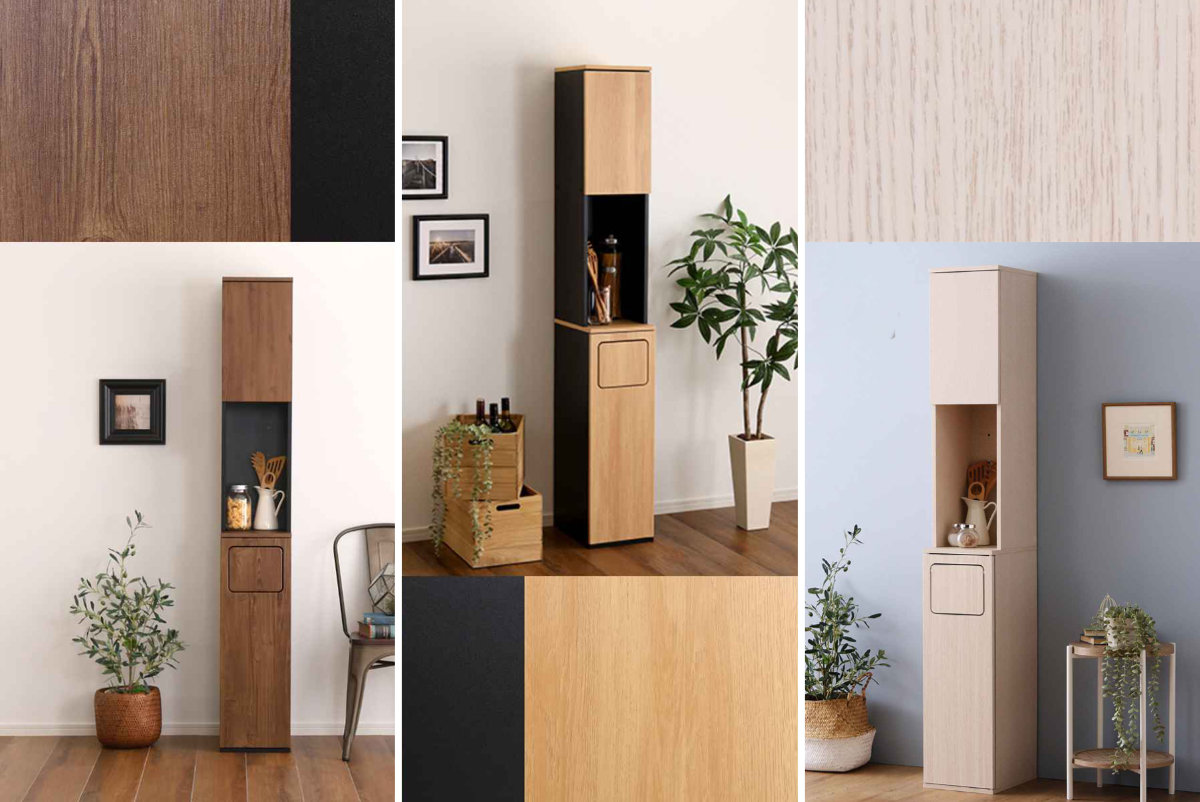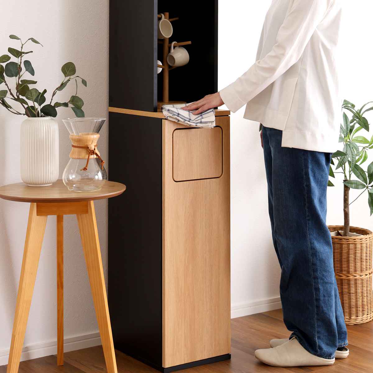 ゴミ箱上の空間を収納として利用でき、デッドスペースを有効活用できます。キッチン周りの収納や家電、ゴミ箱のスペースもこれ一台でスッキリまとまります。