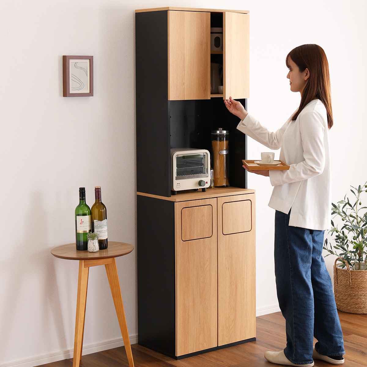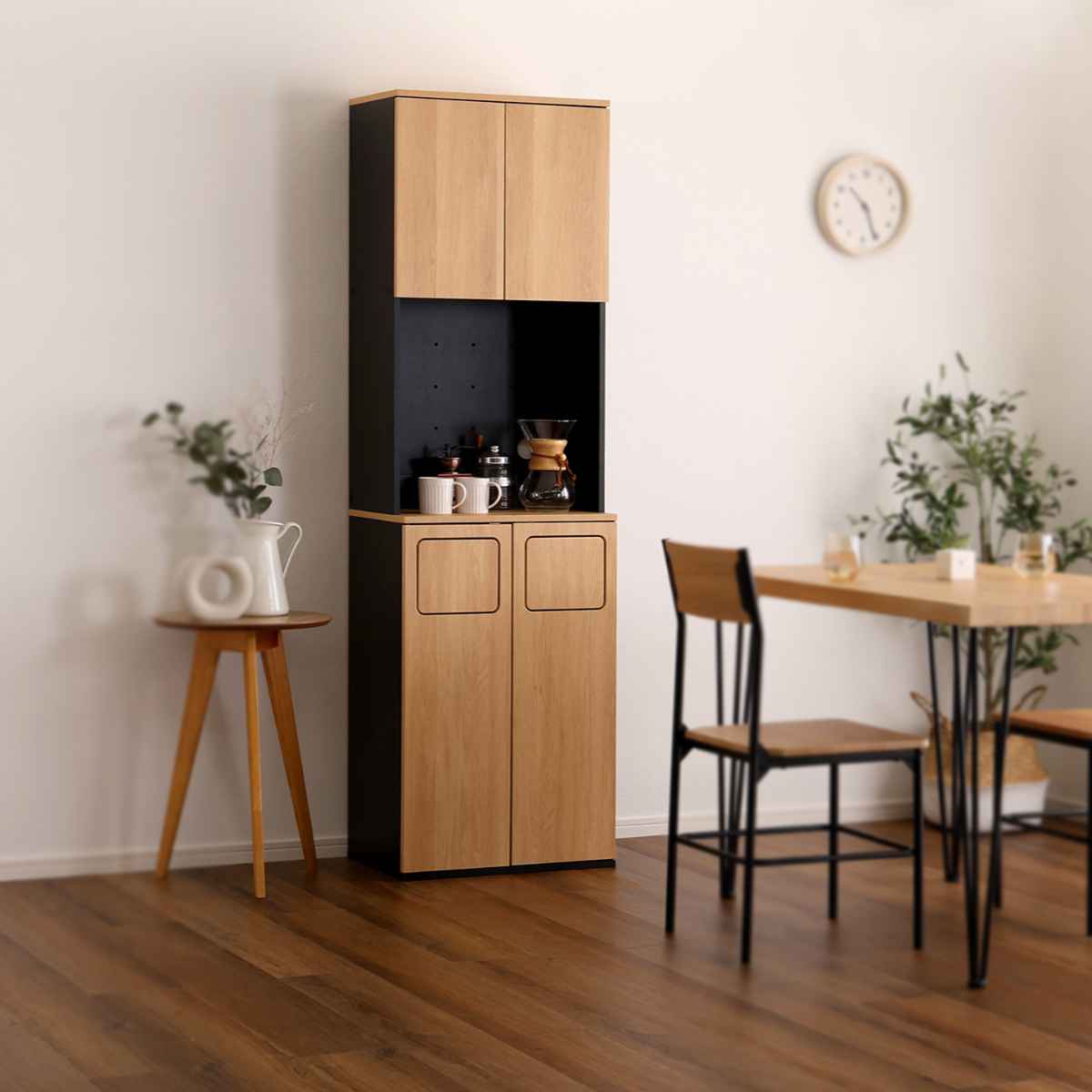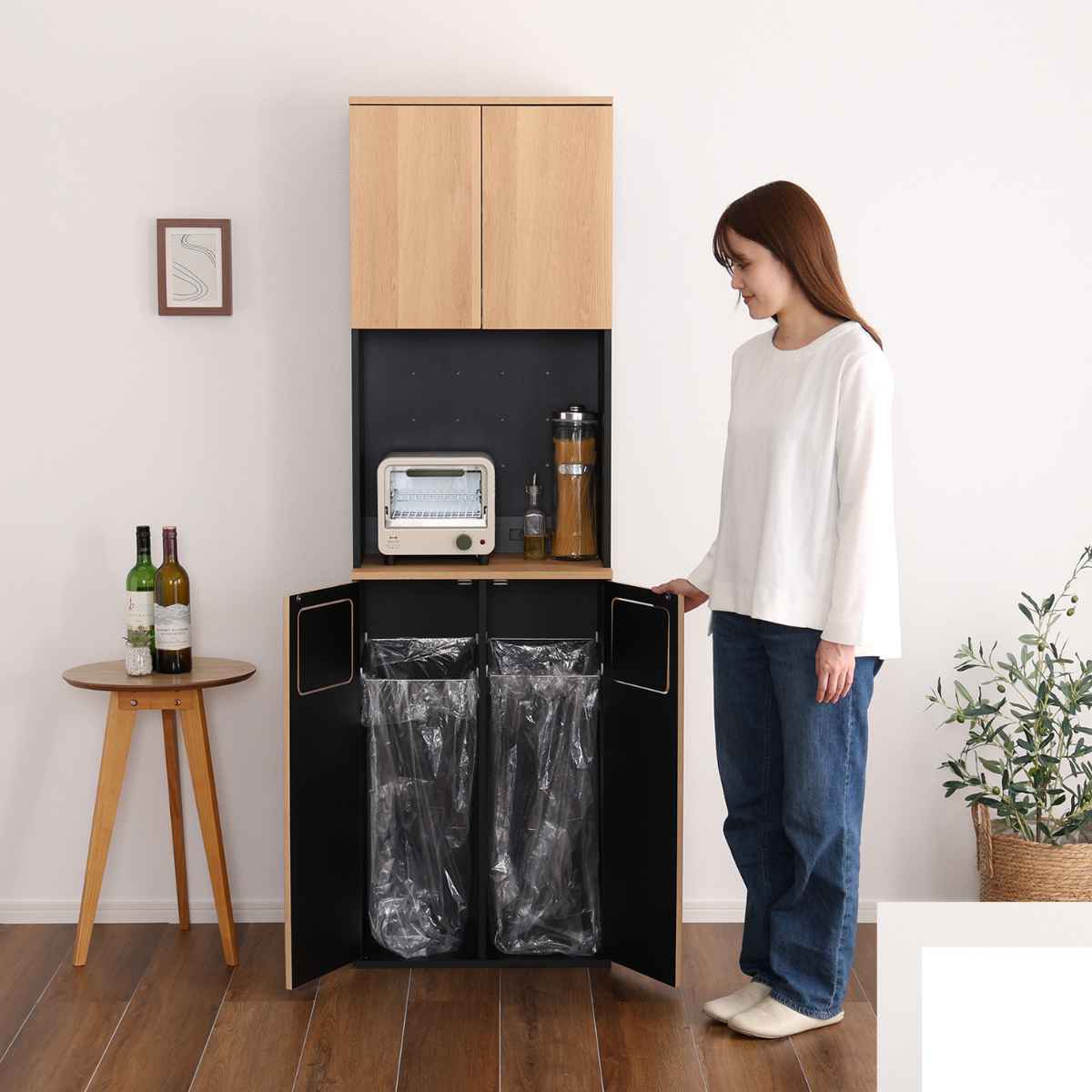 食器棚とゴミ箱の一台二役。ゴミ箱一体型食器棚です。まるで家具のようなデザインは、一見ゴミ箱に見えません。「生活感を隠したい」「オシャレに収納したい」そんな思いに寄り添うアイテムです。