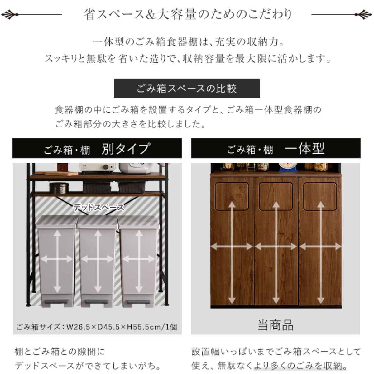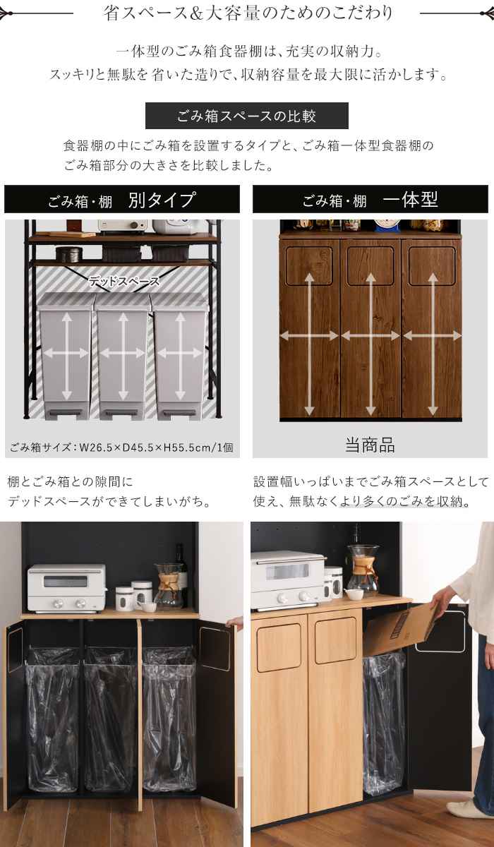 ![]() 幅26.6cm ゴミ箱一体型食器棚 | ![]() 幅53.4cm ゴミ箱一体型食器棚 | ![]() 幅80cm ゴミ箱一体型食器棚 【▲このページの商品】 |