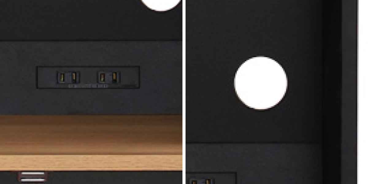 オープン収納部分に2口コンセントが付いているので、家電製品の配線がキレイに収まります。配線穴はコードを裏に通すことができ、まとまりにくい配線もスッキリとした印象になります。