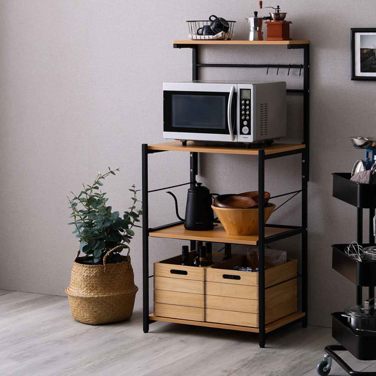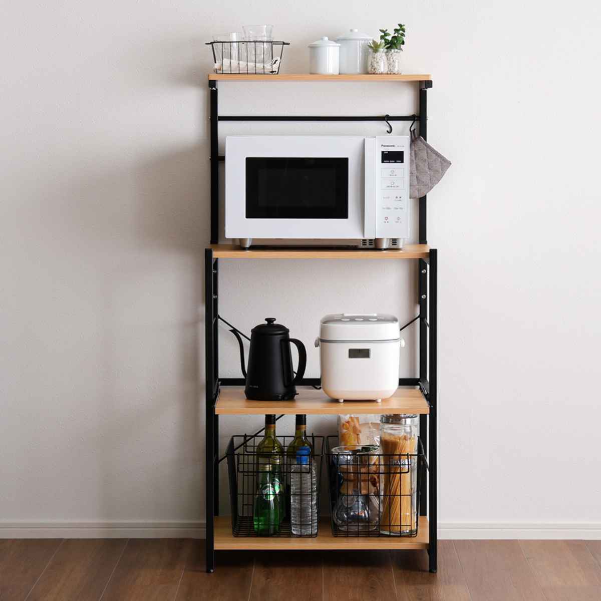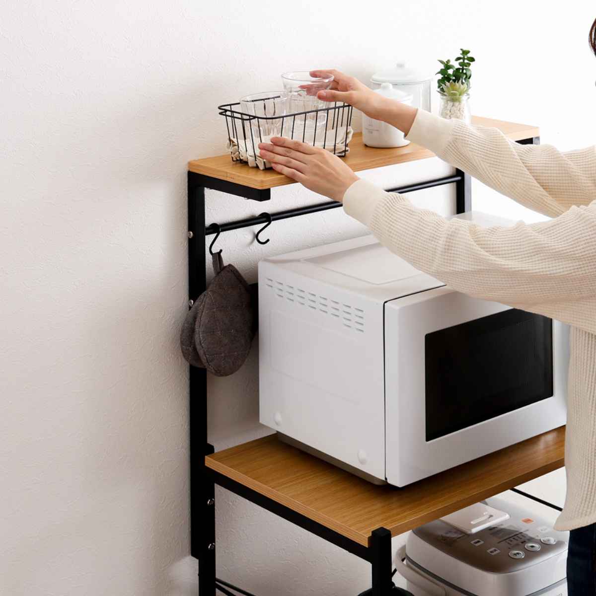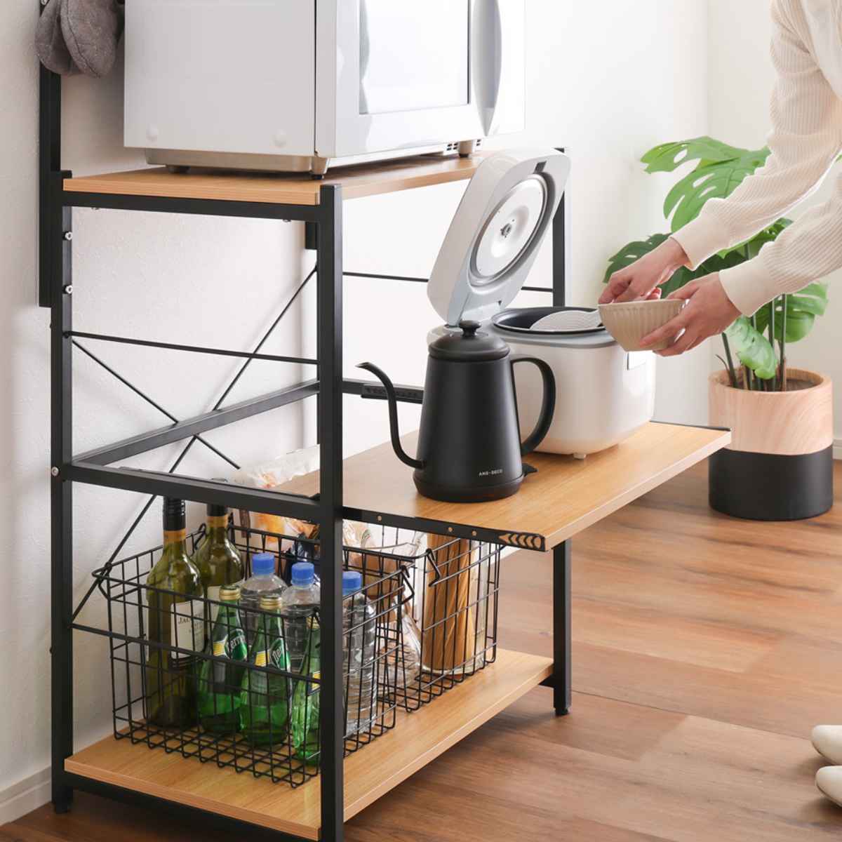 カウンター部分は耐重量25kgなので、電子レンジはもちろん、炊飯器や電気ケトル、トースターなどのキッチン家電を安心して設置できます。