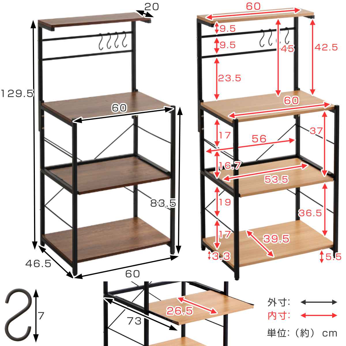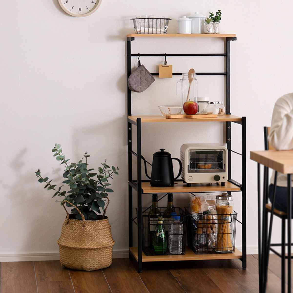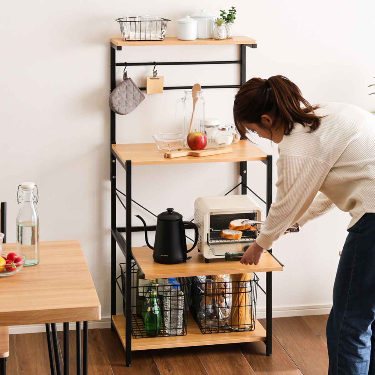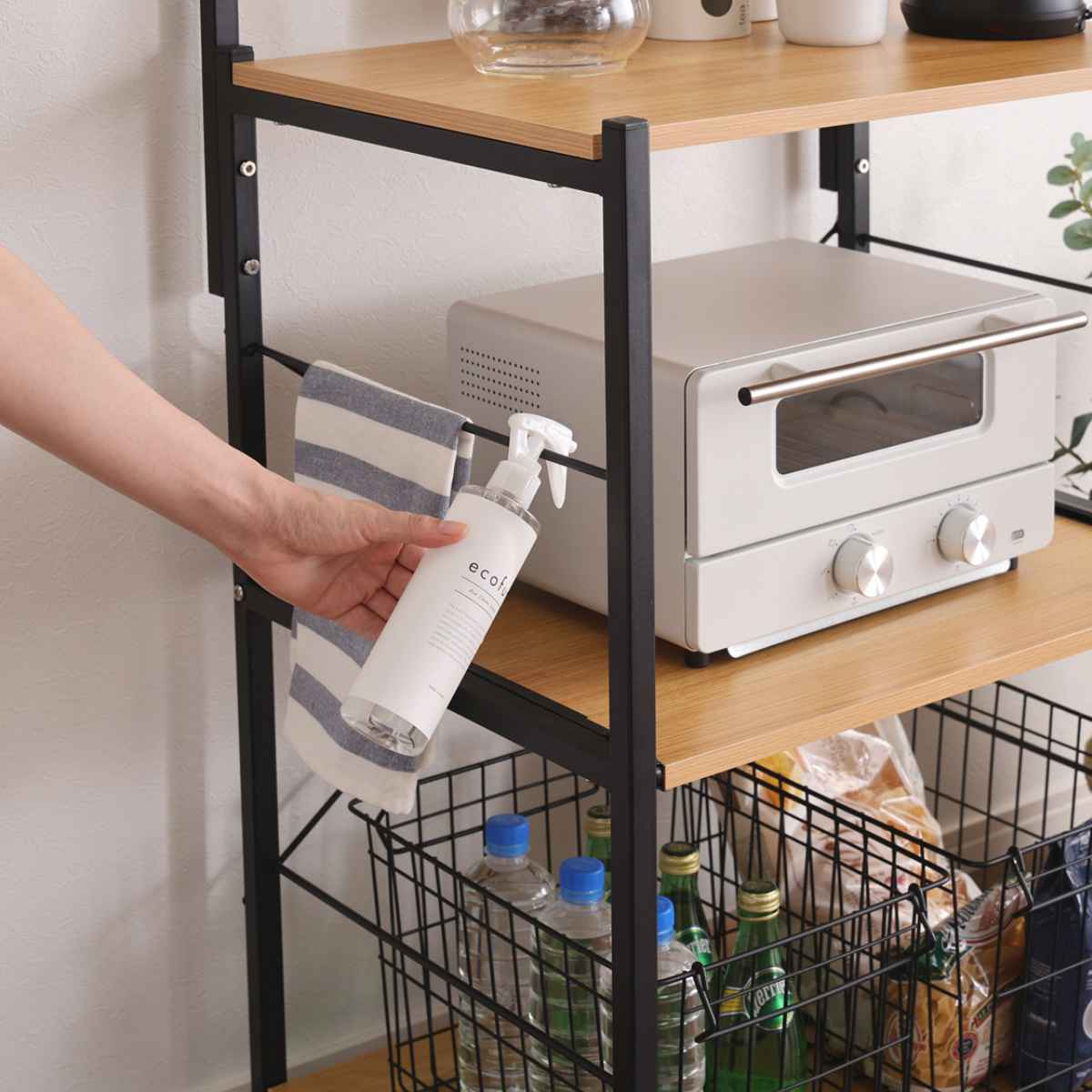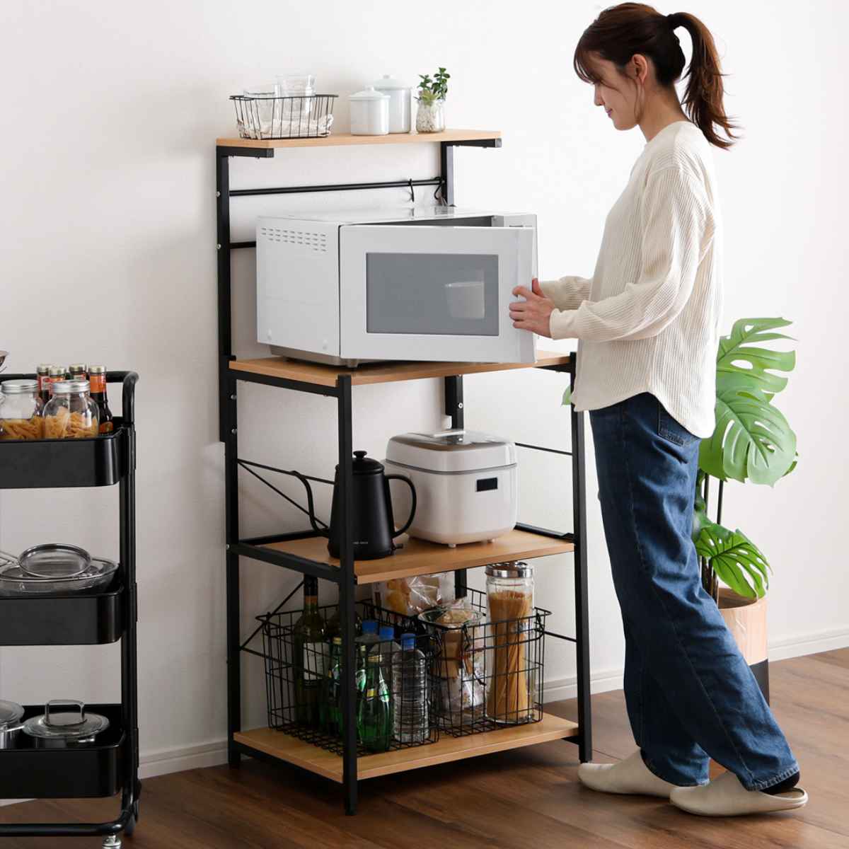 カウンター部分は耐重量25kgなので、電子レンジはもちろん、炊飯器や電気ケトル、トースターなどのキッチン家電を安心して設置できます。