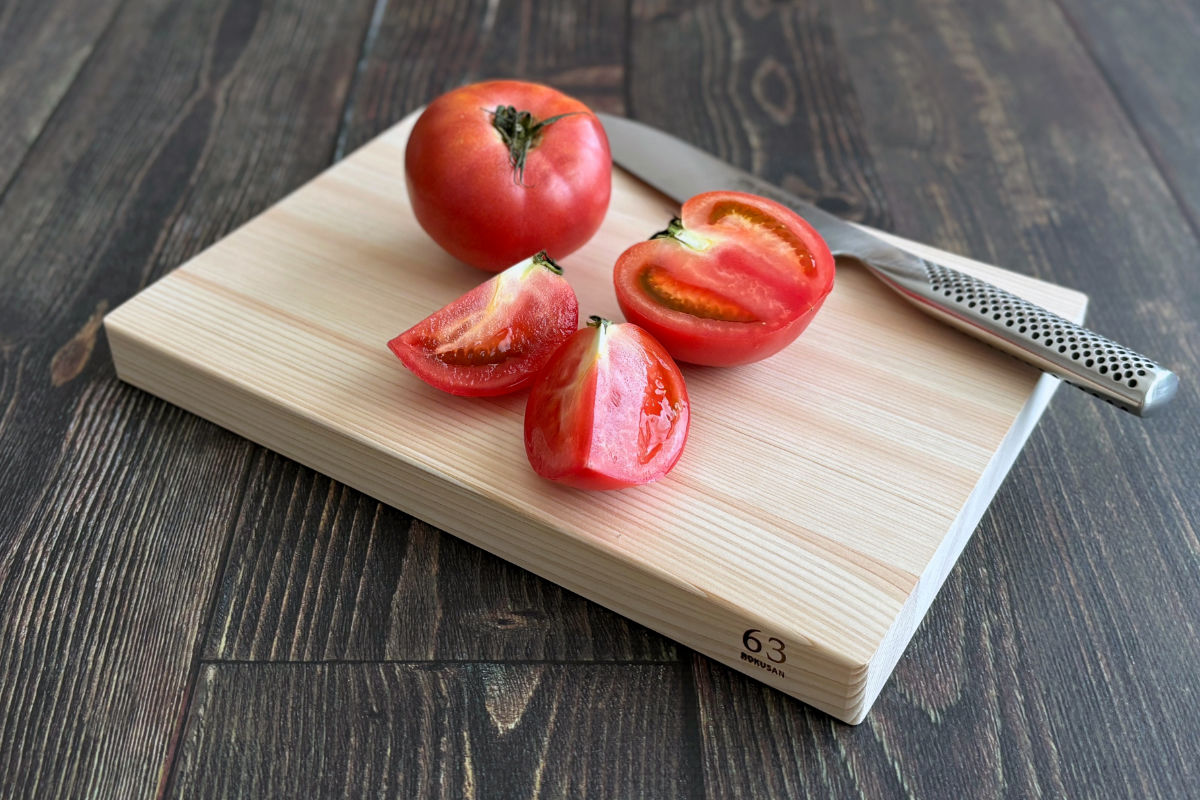 木肌が柔らかいので包丁の刃当たりが優しく、トントンと心地良く食材を切れます。