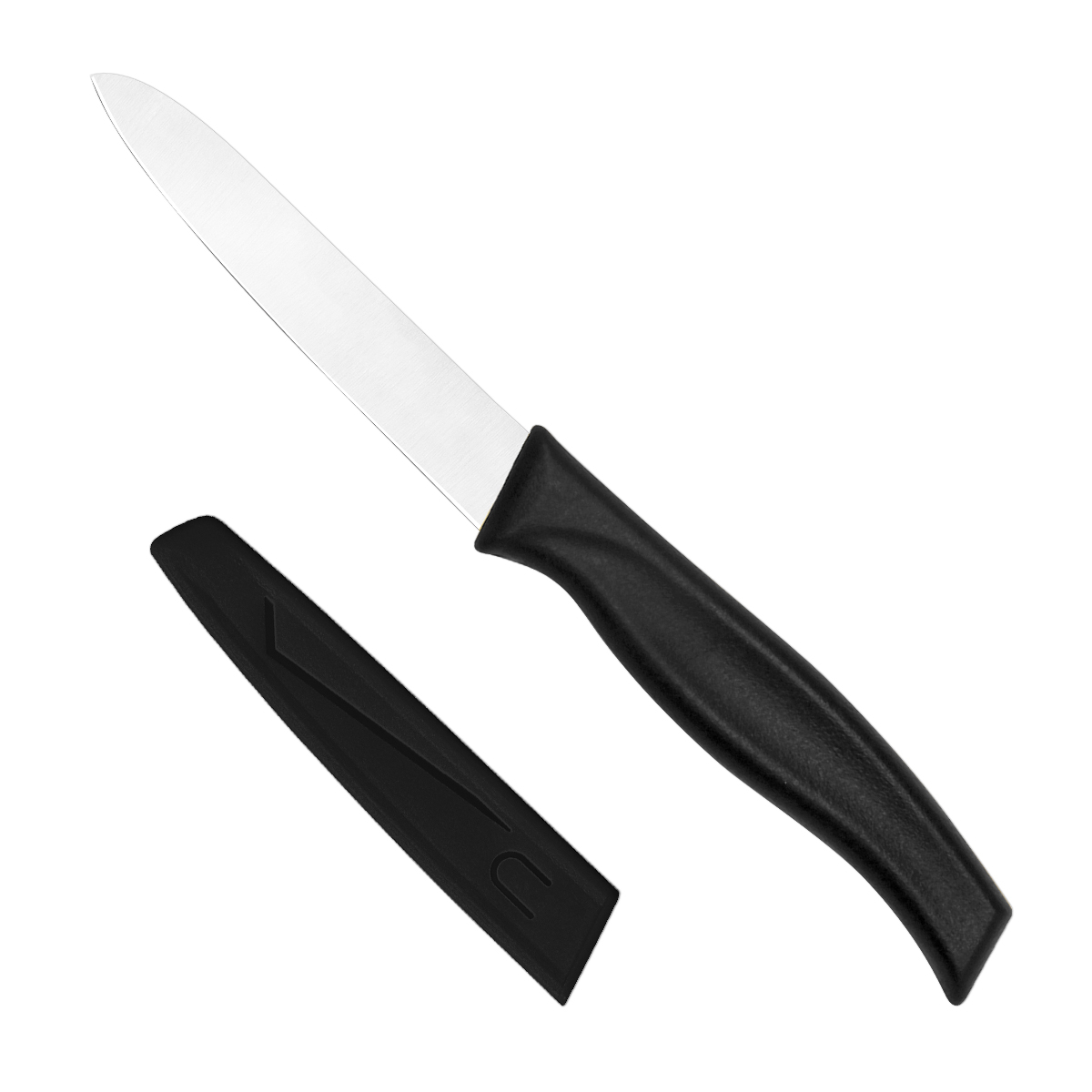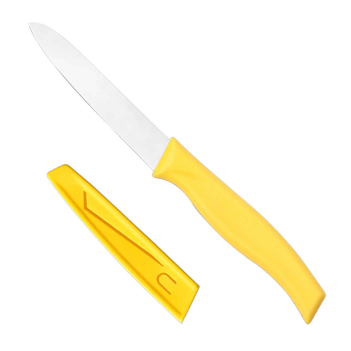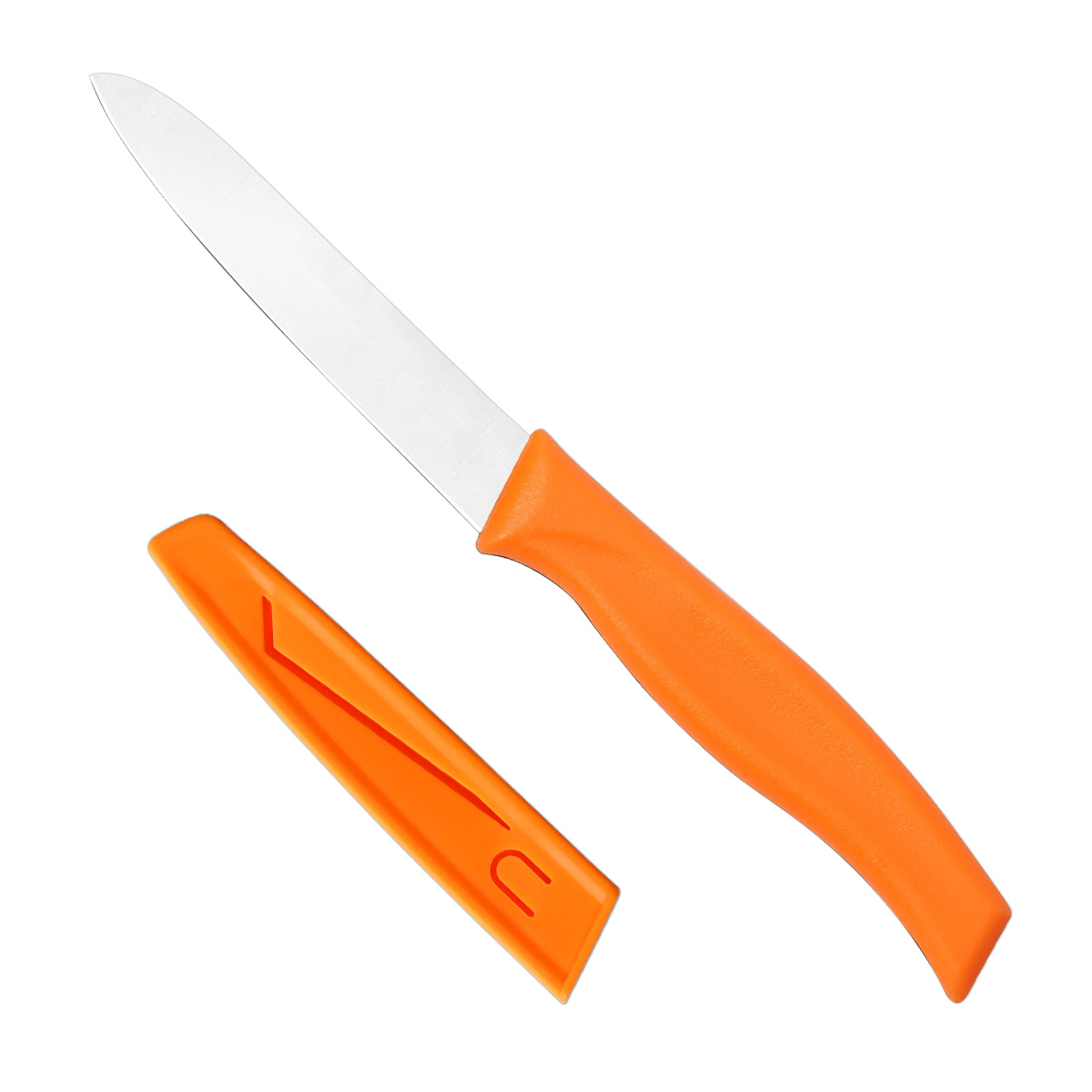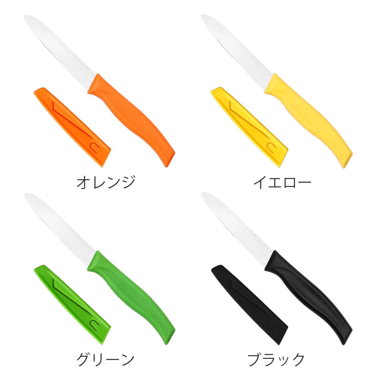 持ち運びに便利な、サヤ付きのナイフです。刃渡り10cmのコンパクトサイズで、フルーツのカットや皮むきに最適です。また調理だけでなく、段ボールのカッターとしてなど様々な場面で活躍します。