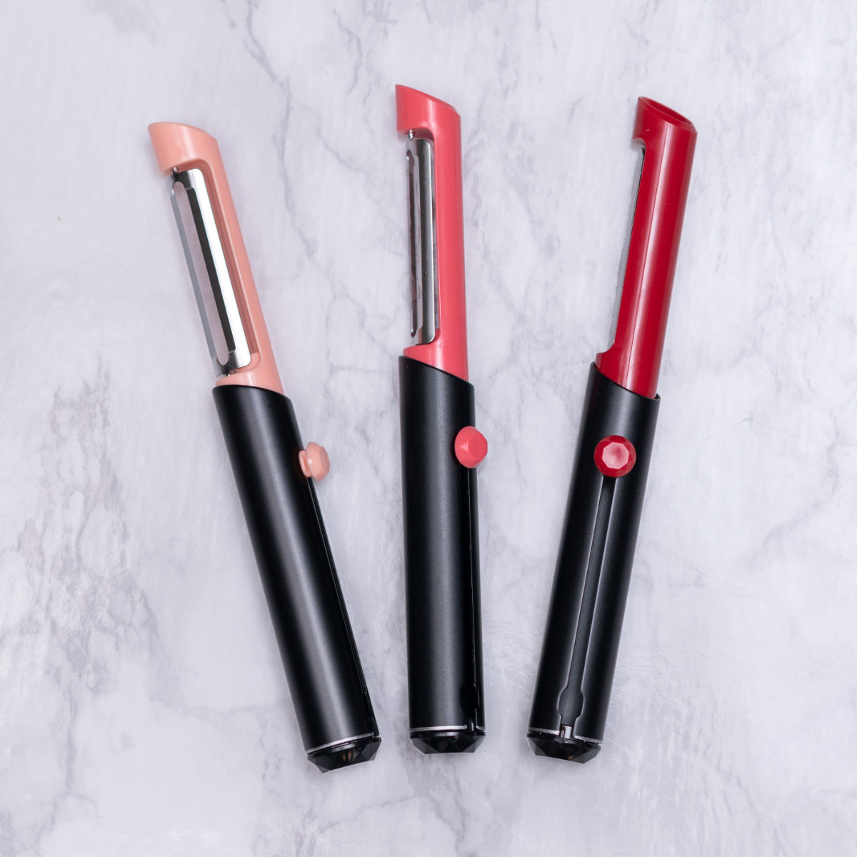 口紅のようなデザインのピーラーです。口紅のように刃を繰り出して使用します。コスメのようなフォルムで、使うのが楽しみになります。