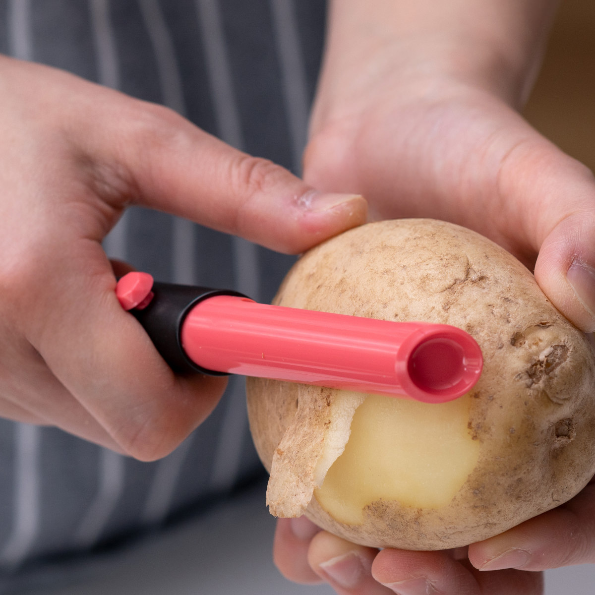 刃を収納した状態で先端を使って、じゃがいもの芽が取りができます。