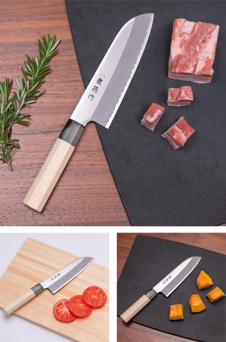 肉や魚、野菜など幅広い食材に対応できる万能包丁です。様々なお料理をこれ一本でまかなうことができ、一般家庭でもオールマイティーに活躍します。