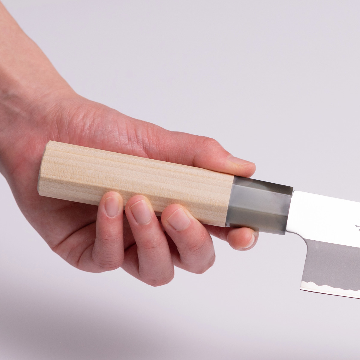 天然木を使用した、八角ハンドルの和包丁です。八角ハンドルは握りやすく滑りにくいため、手にかかる負担を和らげてくれるのが特長です。また、そのすっきりとしたフォルムは見た目にも美しく、シャープな雰囲気を醸し出します。