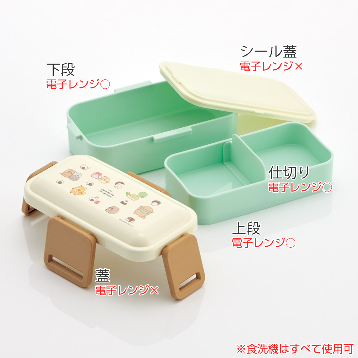 上段に230ml、下段に370mlで総容量は600ml入ります。お弁当箱の下段には、お茶碗約1.9杯分(お茶碗1杯:約200ml)入るので、小学生以上のお子様や女性にピッタリなサイズです。本体には安心の抗菌加工が施されています。