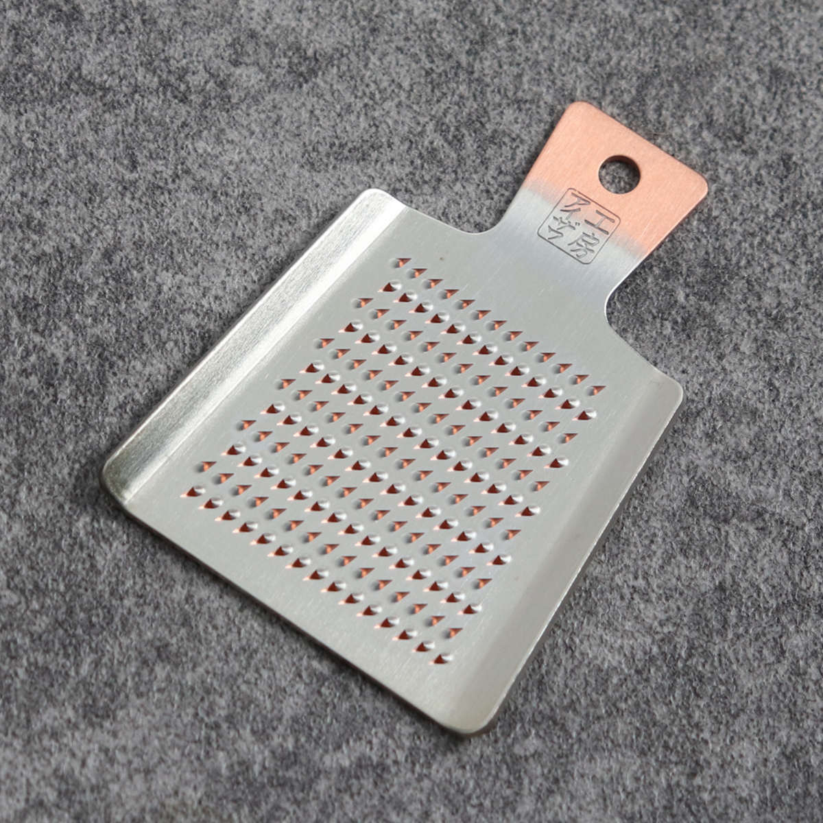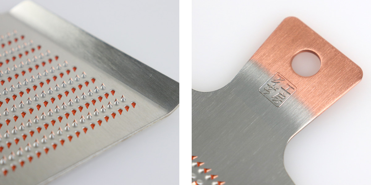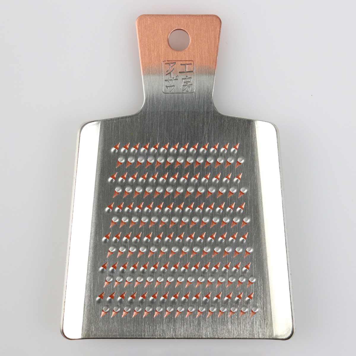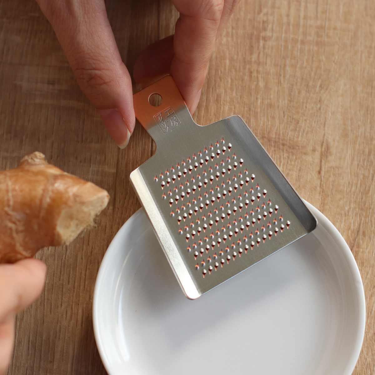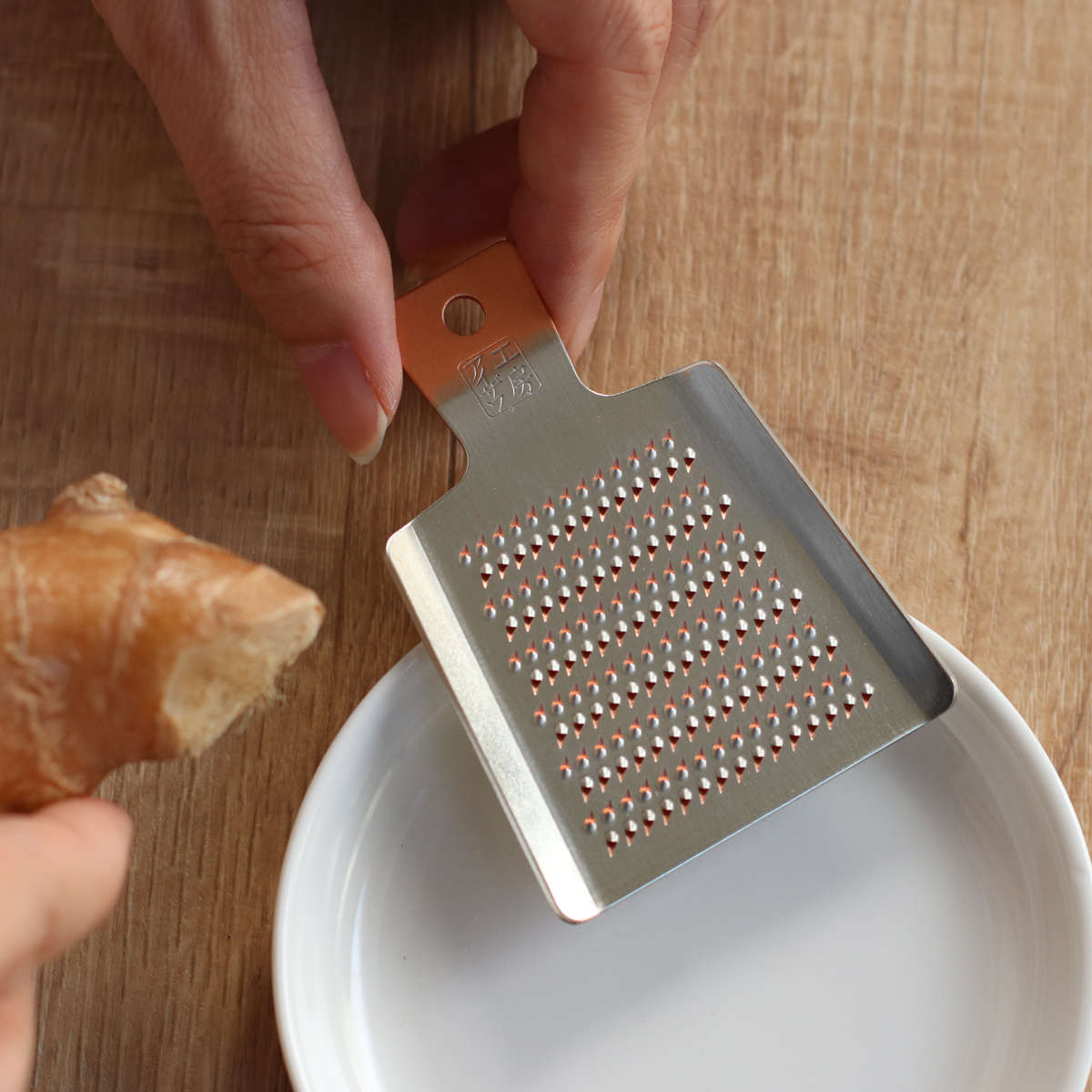 純銅製に錫めっきが施された耐久性と切れ味に優れた手のひらサイズのおろし金。長く愛用できる丈夫なおろし金は使う度に風合いが増し、自分仕様に変化していくことで愛着が湧き欠かせない道具になります。
