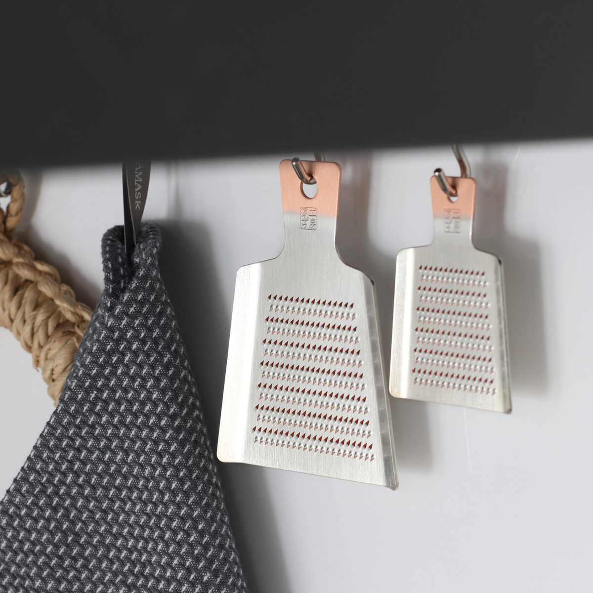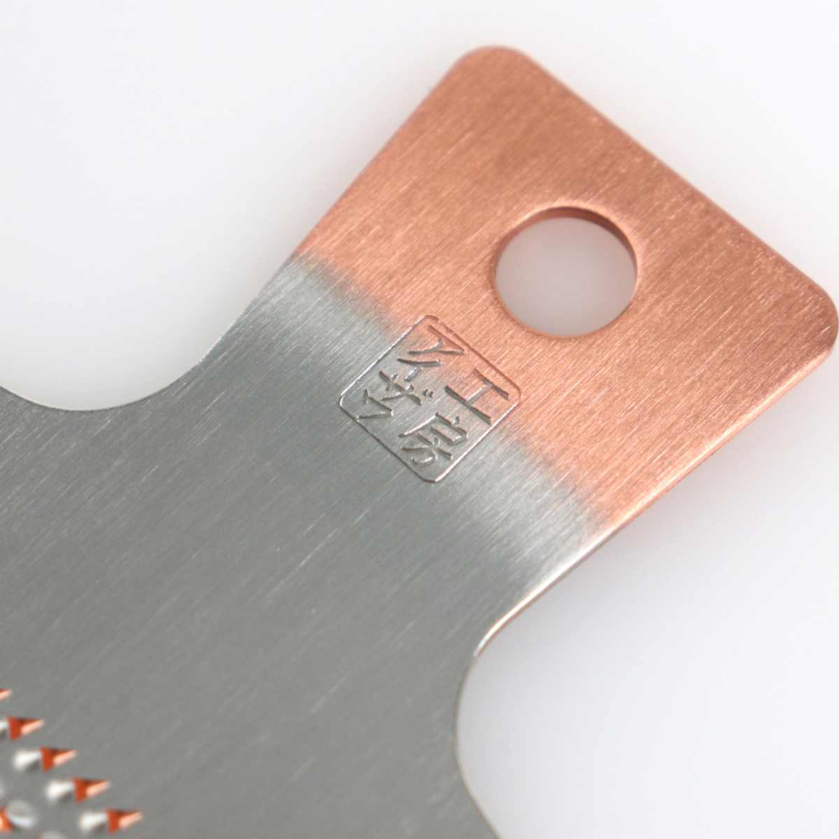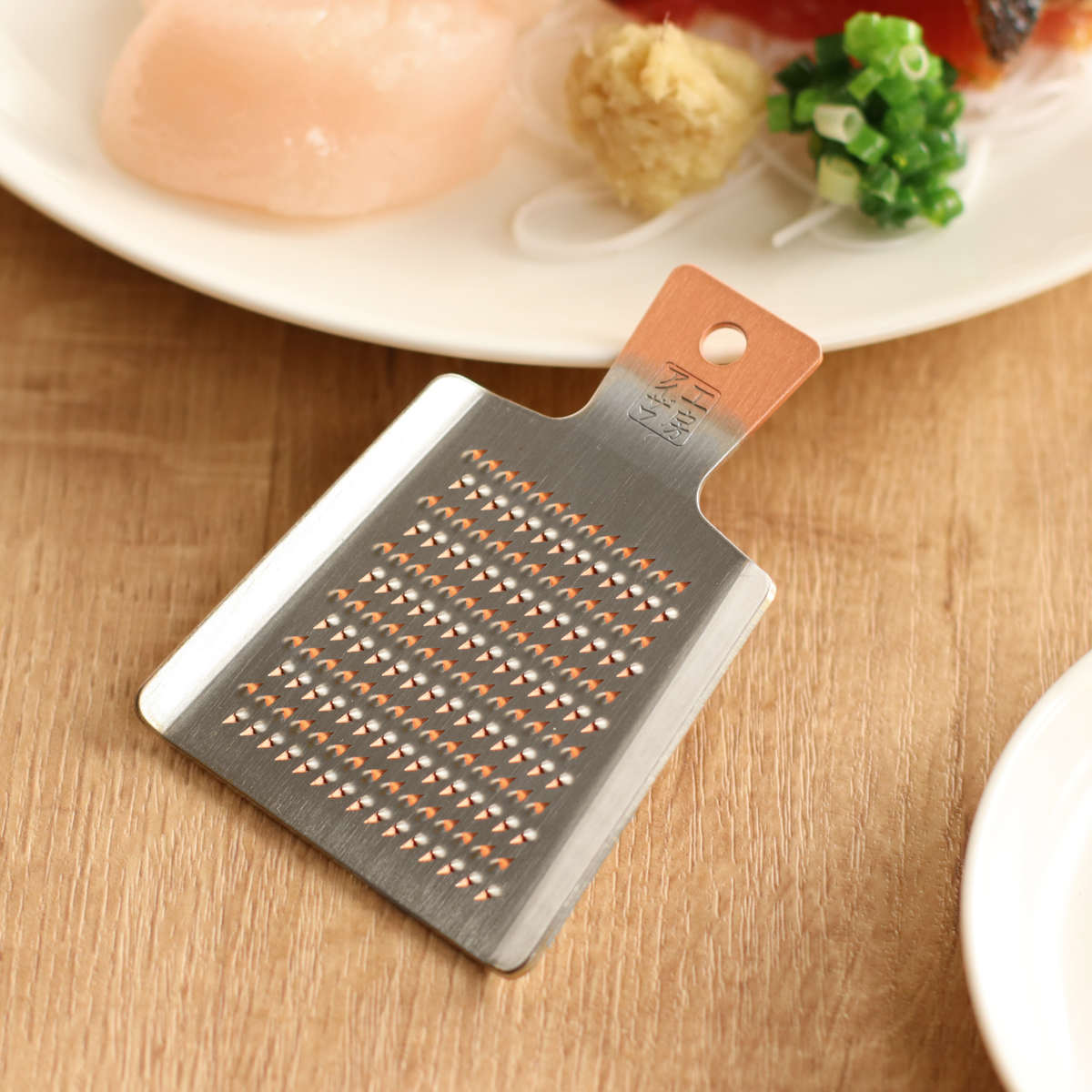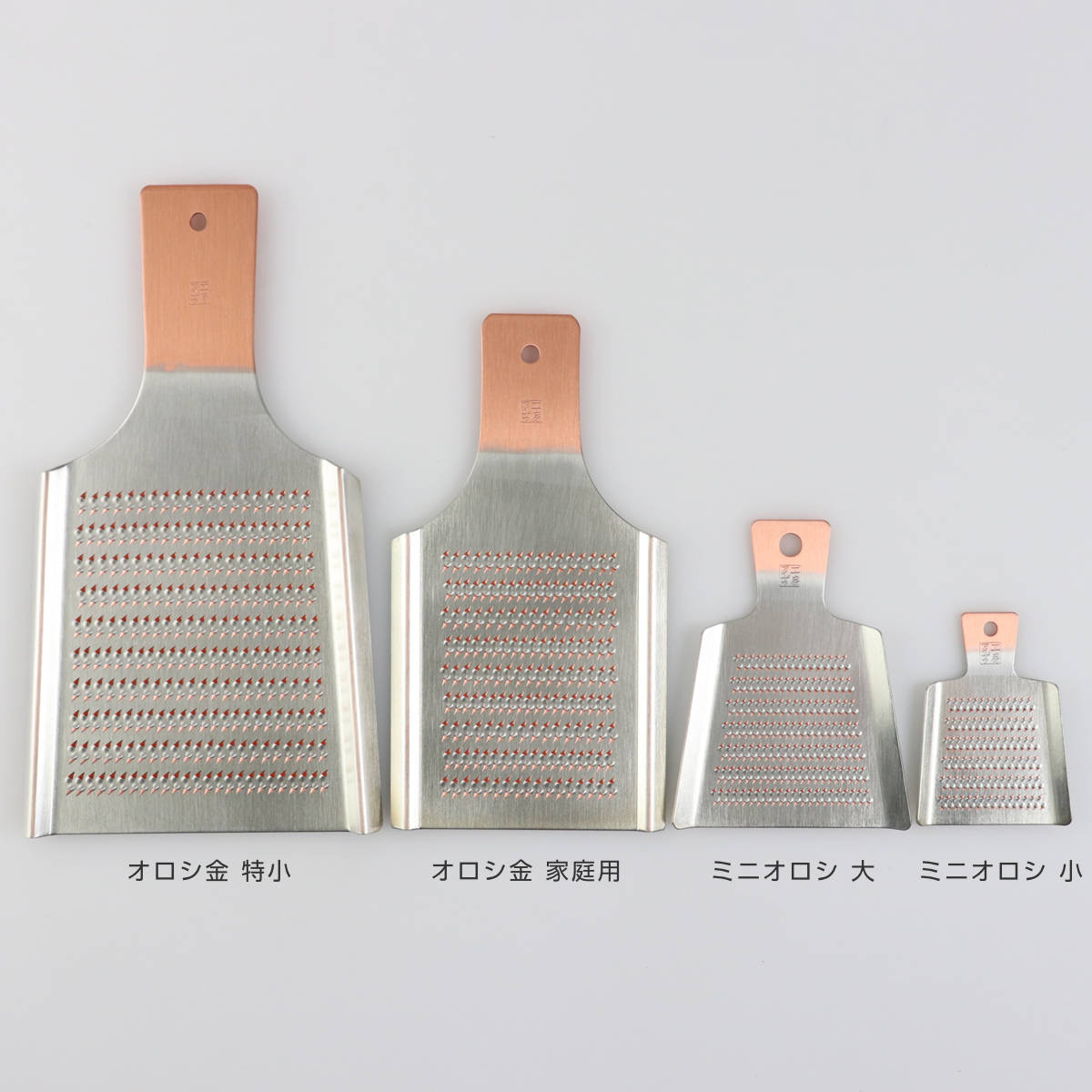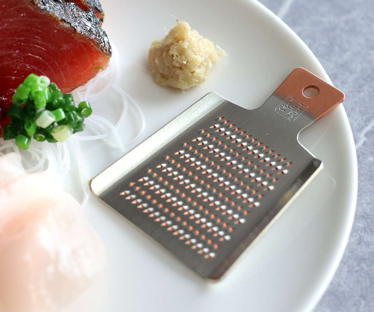 純銅製に錫めっきが施された耐久性と切れ味に優れた手のひらサイズのおろし金。長く愛用できる丈夫なおろし金は使う度に風合いが増し、自分仕様に変化していくことで愛着が湧き欠かせない道具になります。