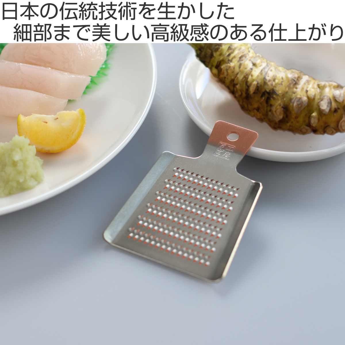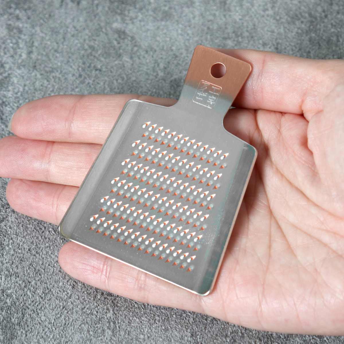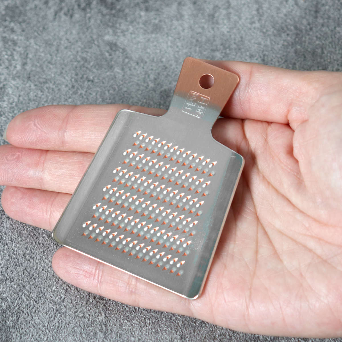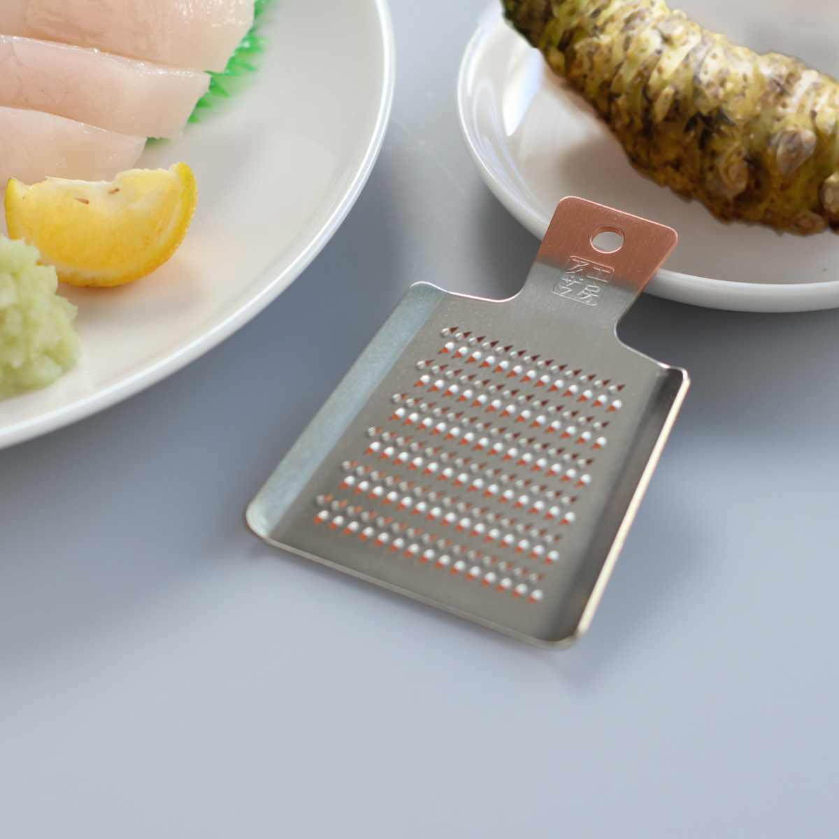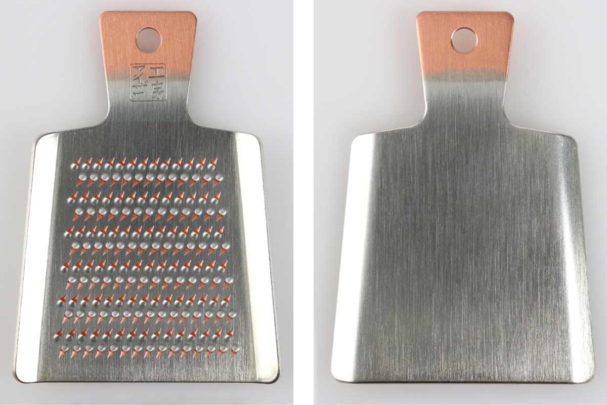純銅製に錫めっきが施された耐久性と切れ味に優れた手のひらサイズのおろし金。長く愛用できる丈夫なおろし金は使う度に風合いが増し、自分仕様に変化していくことで愛着が湧き欠かせない道具になります。