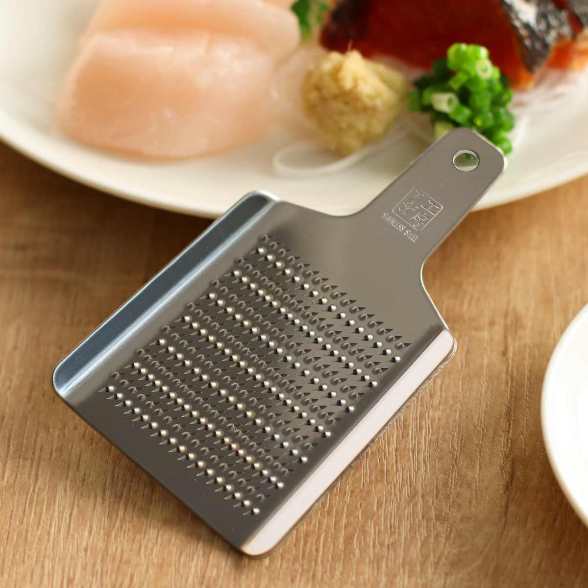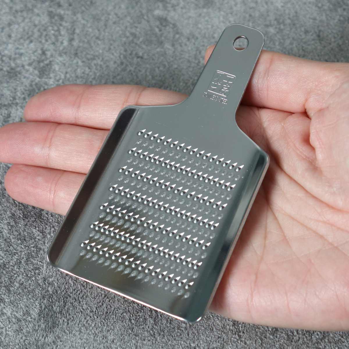 手のひらサイズの小さいおろし金は、丈夫で衛生的に使えるステンレス製です。お手入れが簡単でサビや汚れに強く、毎日の食事に手軽に薬味おろしを取り入れることができます。