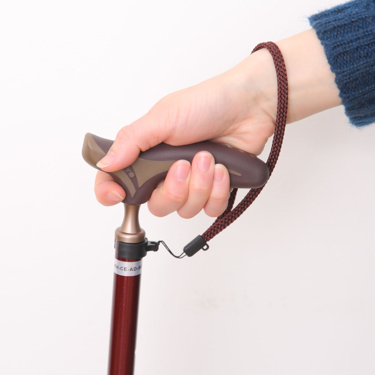 ストラップを手首に通せば、両手が自由になり、置き場所にも困りません。杖を置き忘れたり、倒したりすることも少なくなります。