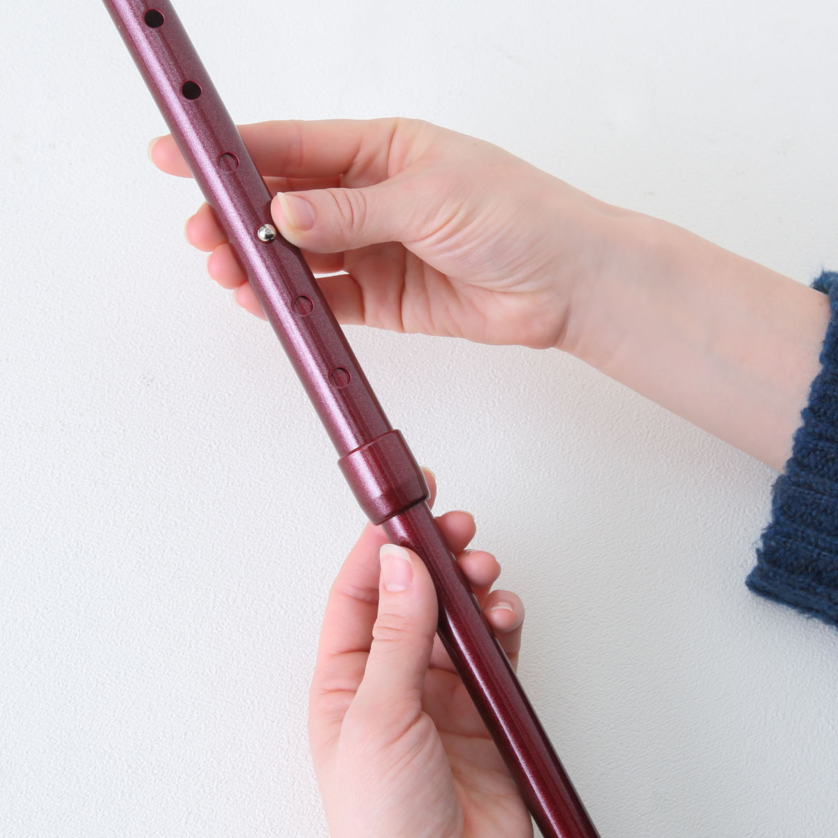 シャフトはメタリックカラーの3色展開、細かいラメが色に深みを加えて高級感を演出します。お出かけを後押しするおしゃれな杖で、大切な人への贈り物にもおすすめです。