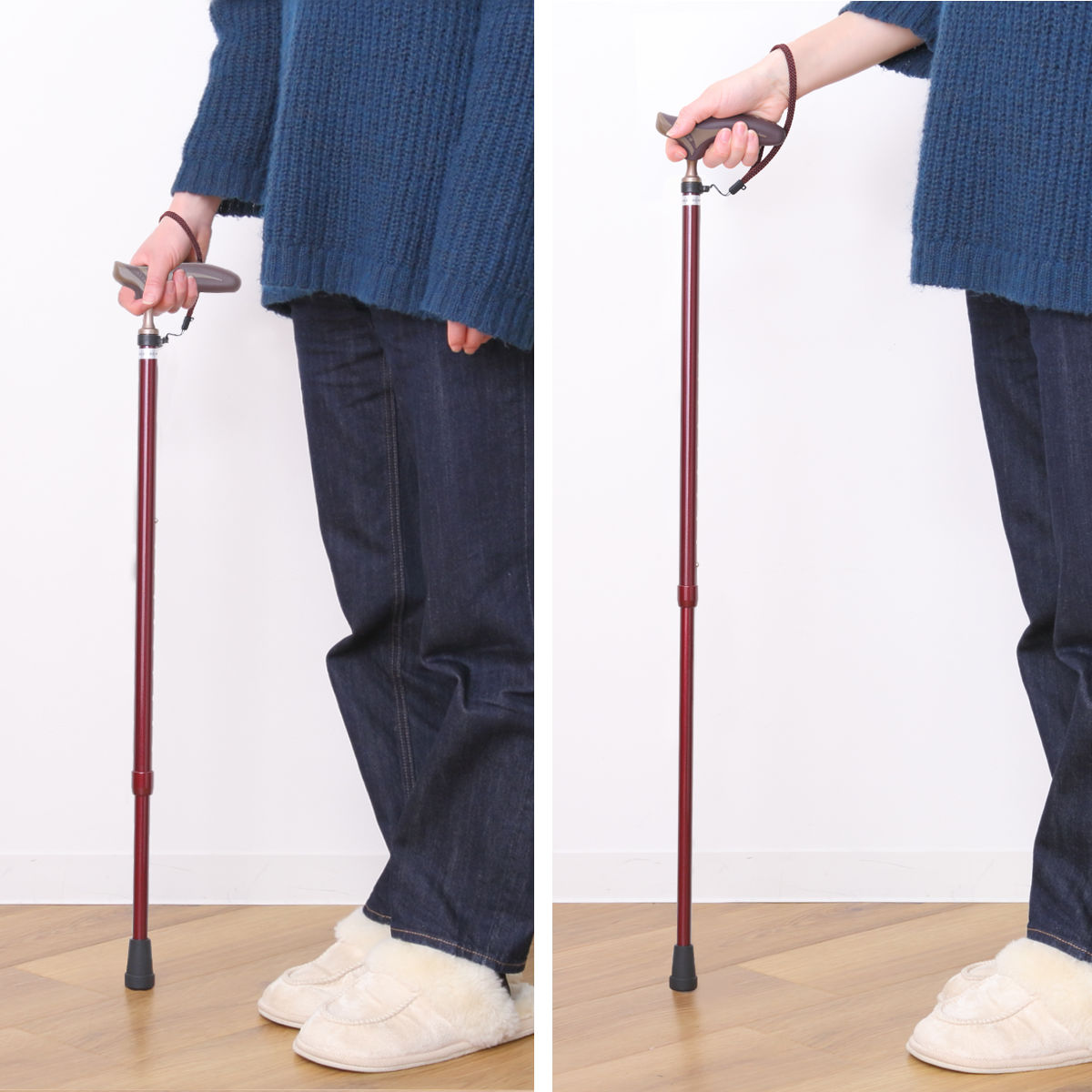抗菌グリップで安心をプラスした伸縮杖です。グリップにはフィット感の高い樹脂素材を採用し、抗菌剤を配合。優れた抗菌力と握りやすさで快適にお使いいただけます。