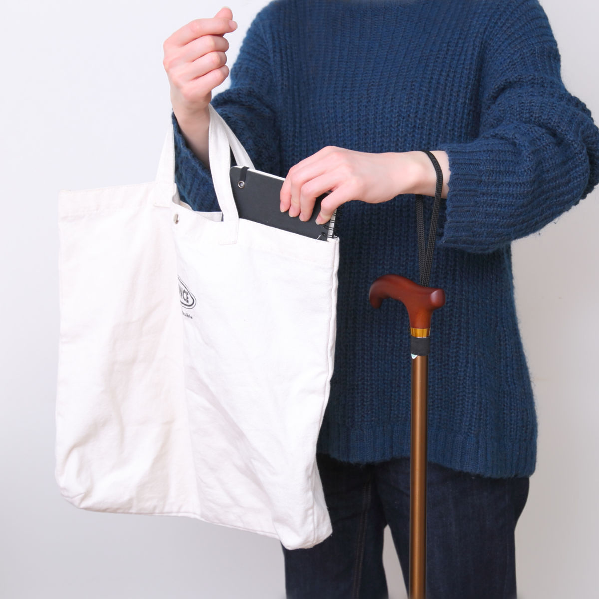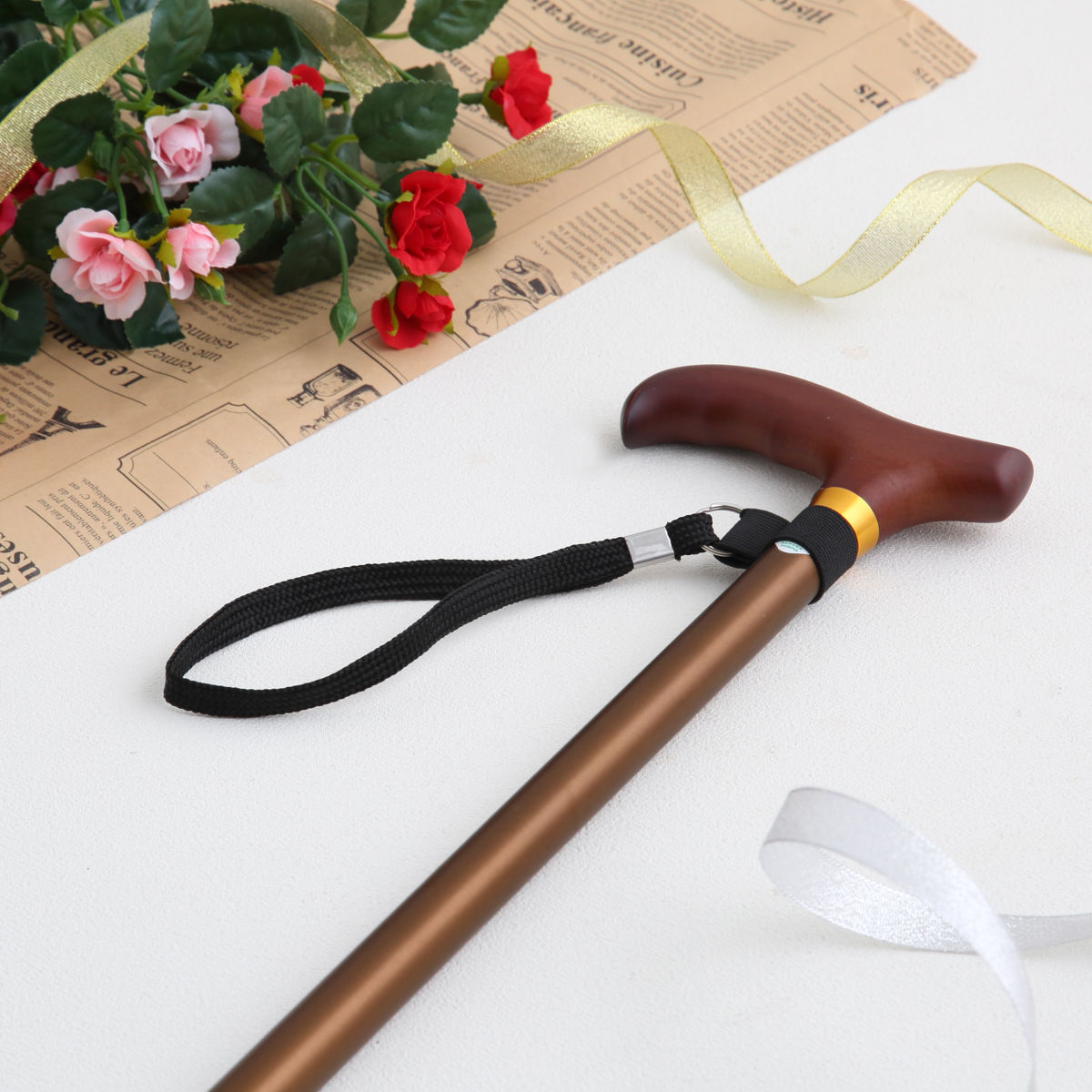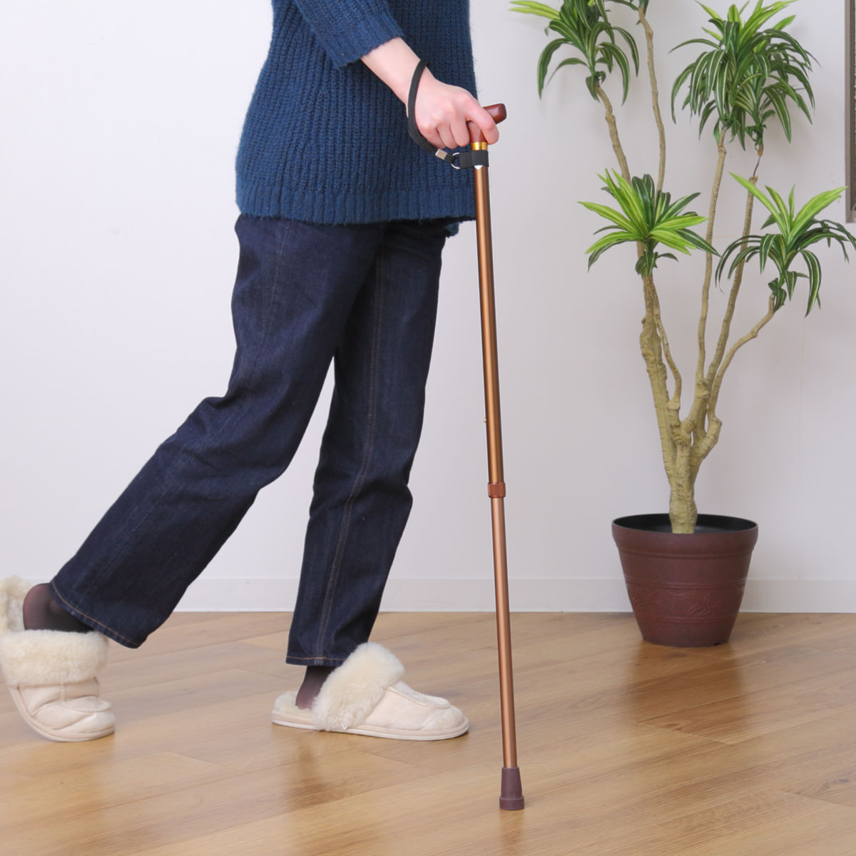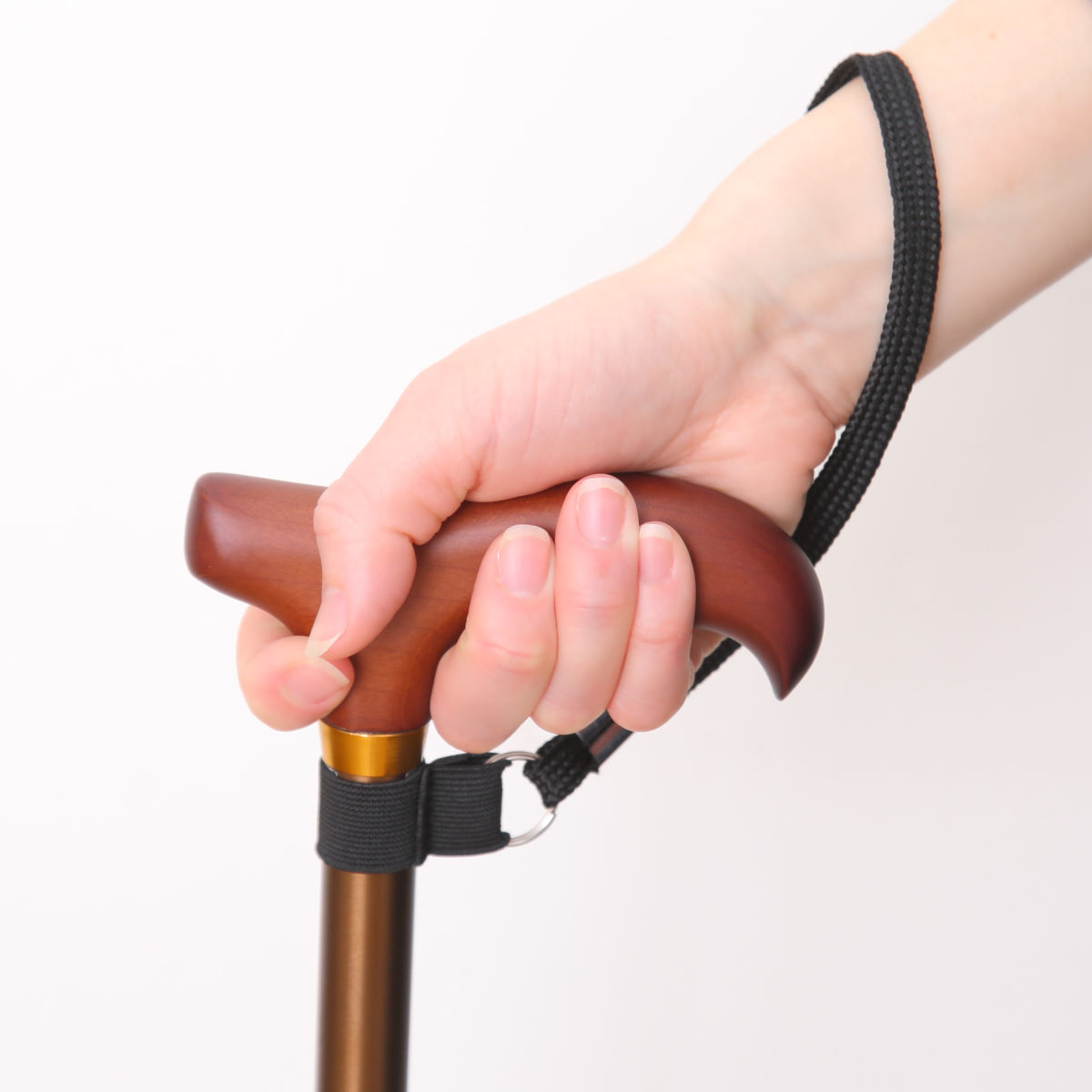 ストラップを手首に通せば、両手が自由になり、置き場所にも困りません。杖を置き忘れたり、倒したりすることも少なくなります。