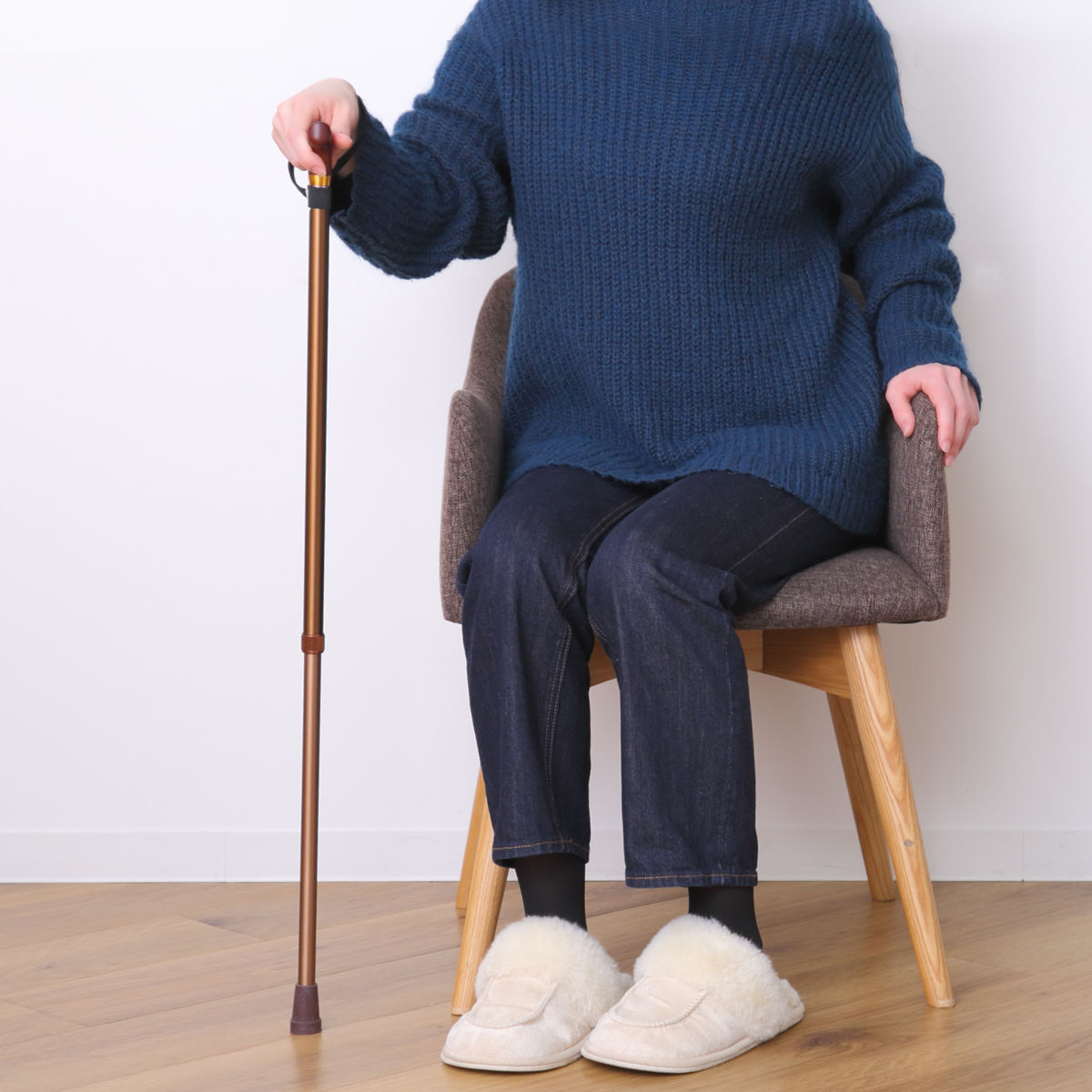 歩行時の使用はもちろん、椅子に座って立ち上がる際にもお使いいただけます。杖をうまく使用することで、椅子からの立ち上がりも楽になります。