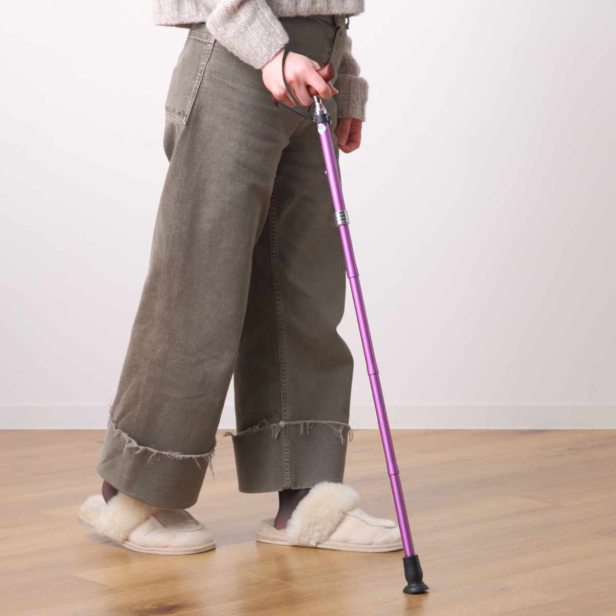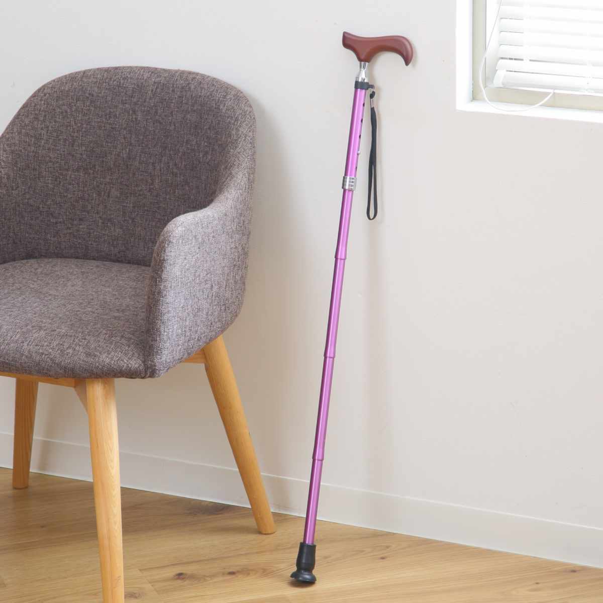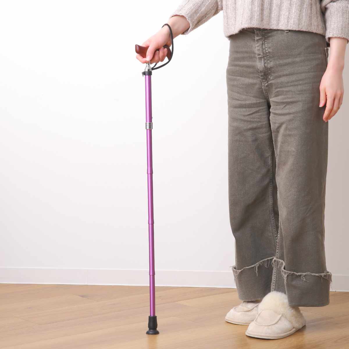 | サイズ | 長さ:(使用時)77~87cm (折り畳み時)29cm 伸縮5段階(2.5cmピッチ) 杖先ゴム径:16mm グリップ:長さ:約 12(cm) |
