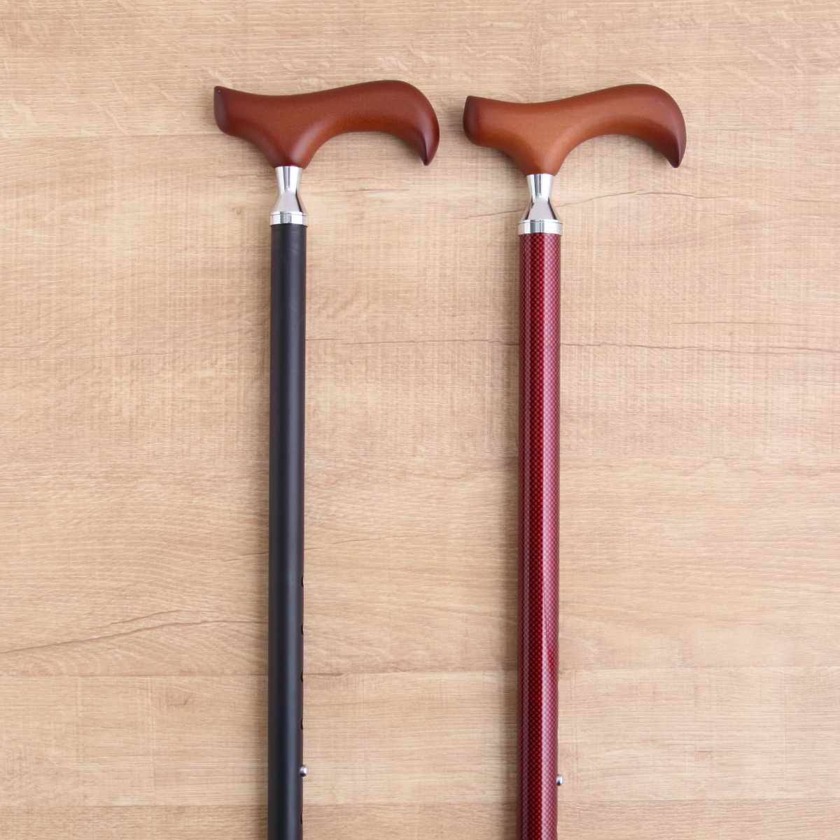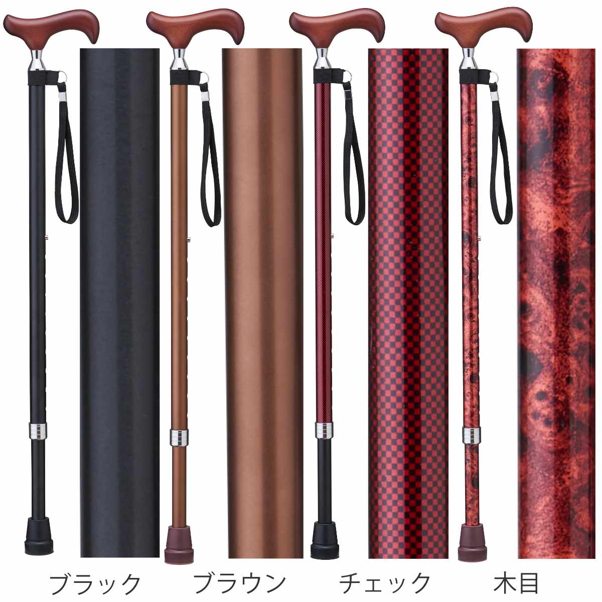 安定感のある太いステッキです。シックな木目、綺麗な市松模様、シンプルな無地、お好きなカラー・デザインをお選びいただけます。