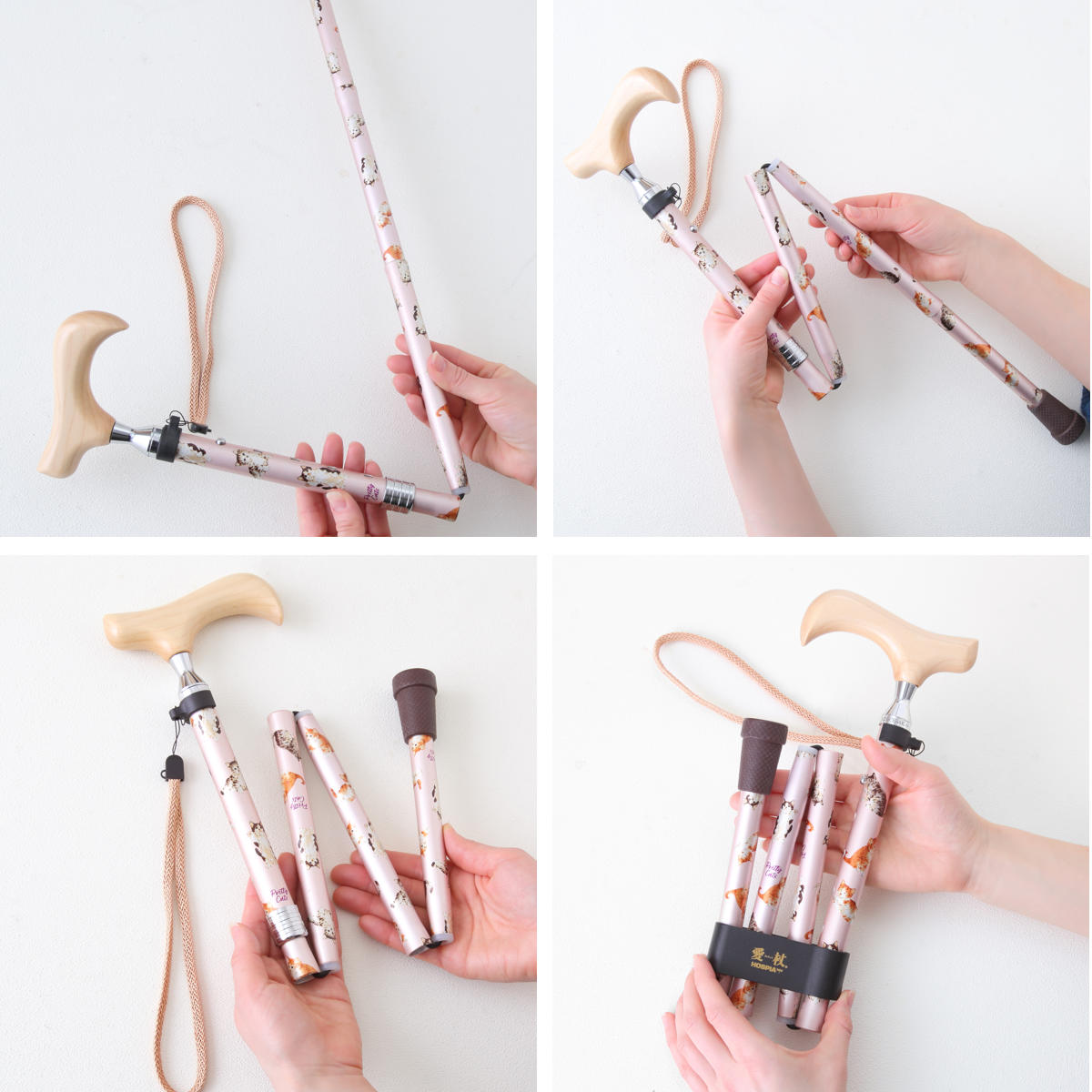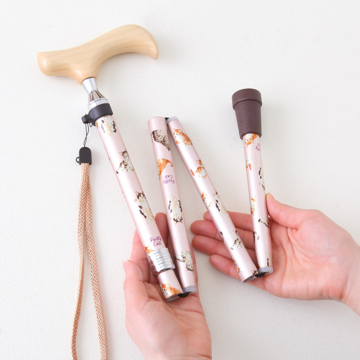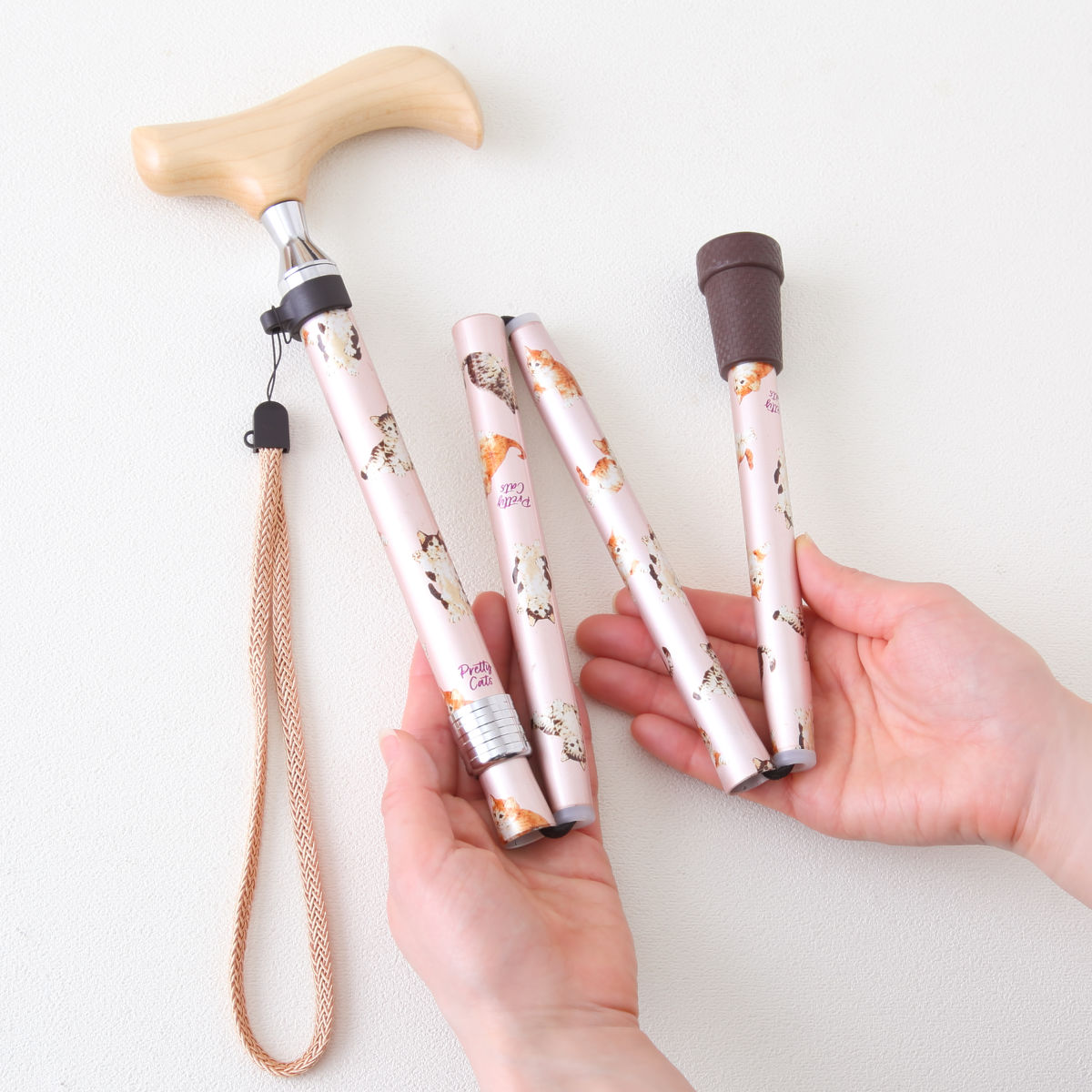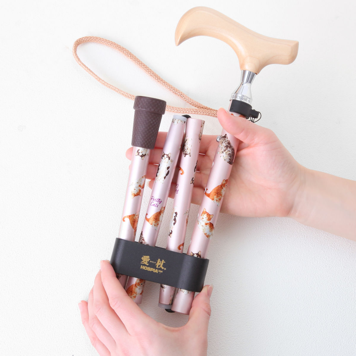 可愛いネコが杖全体にデザインされた折りたたみ杖です。大好きなネコちゃんがお出かけを後押し、ファッションの一部として楽しめる杖です。
