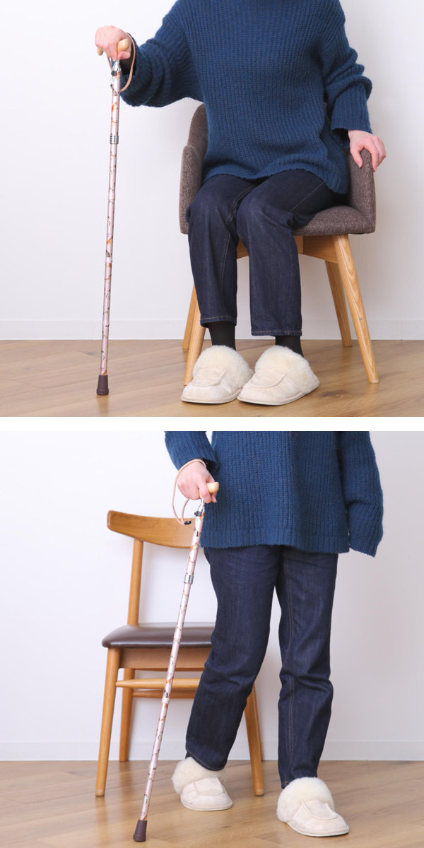 歩行時の使用はもちろん、椅子に座って立ち上がる際にもお使いいただけます。杖をうまく使用することで、椅子からの立ち上がりも楽になります。