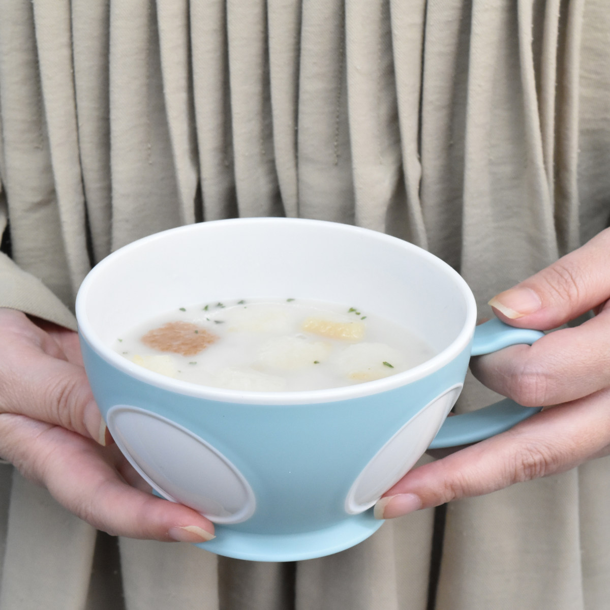 スープやミニラーメン、ミニ丼など少量食べたい時に最適なサイズです。大きな取っ手で持ちやすく、落としても割れにくいポリプロピレン製で手軽に使えます。