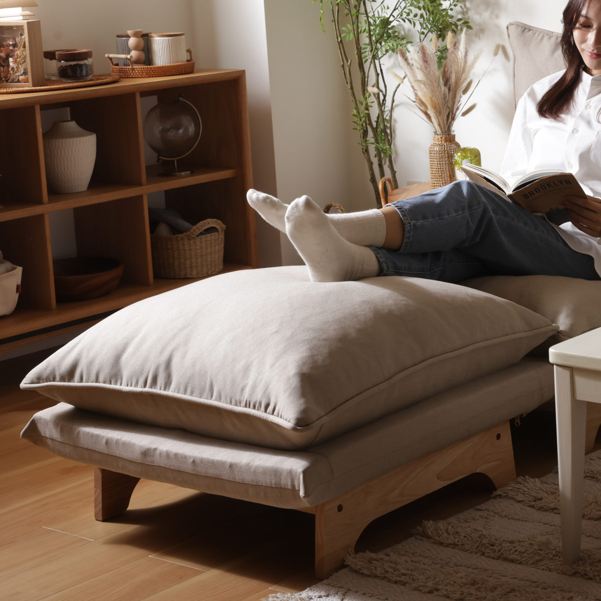 ソファの足置きとしてはもちろん様々なシーンで活躍してくれるゆったりサイズのオットマンです。
