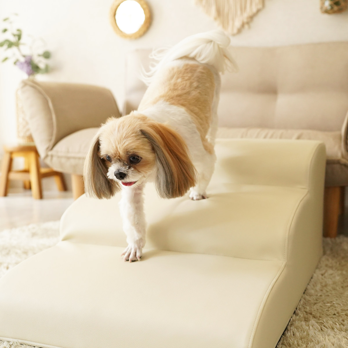 上りやすい坂のような緩やかな階段なので、胴長や小柄なワンちゃんでも上り下りしやすい設計です。