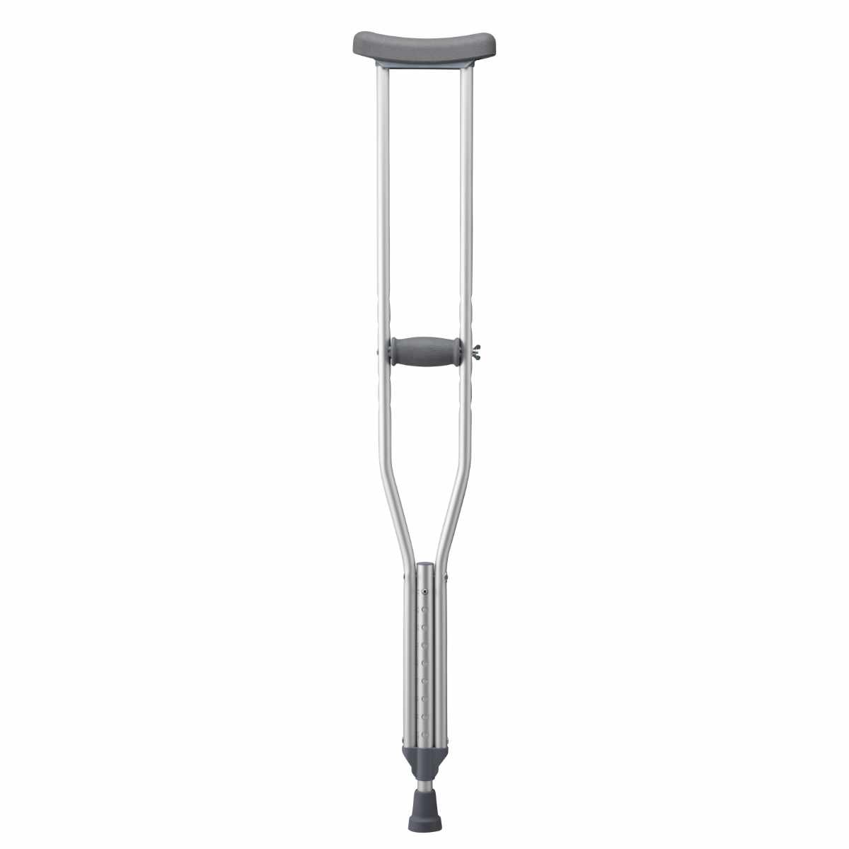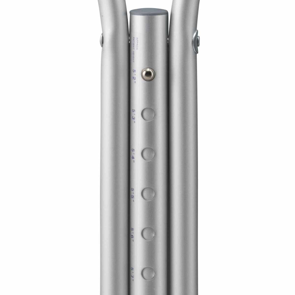脇当てからグリップまでの高さと、松葉杖の長さを使用者の身長に合わせて調節することができます。