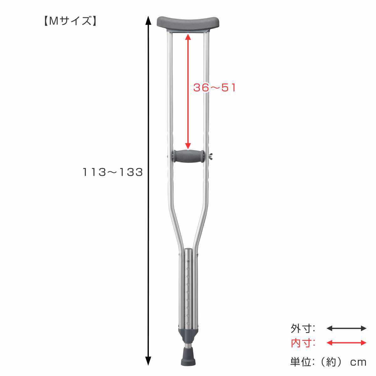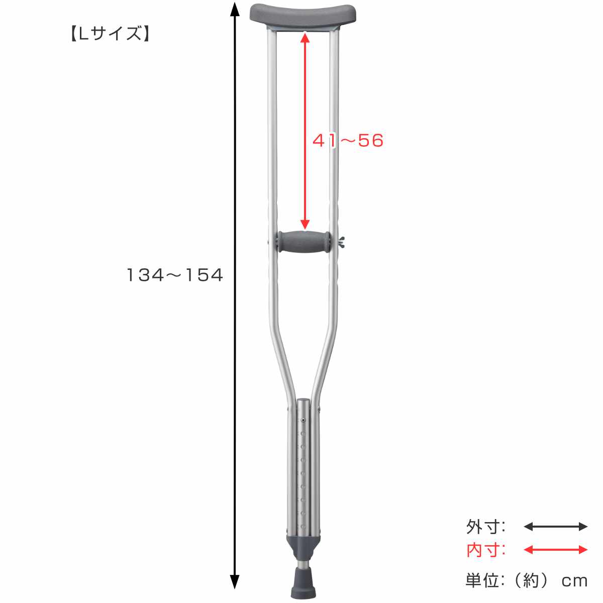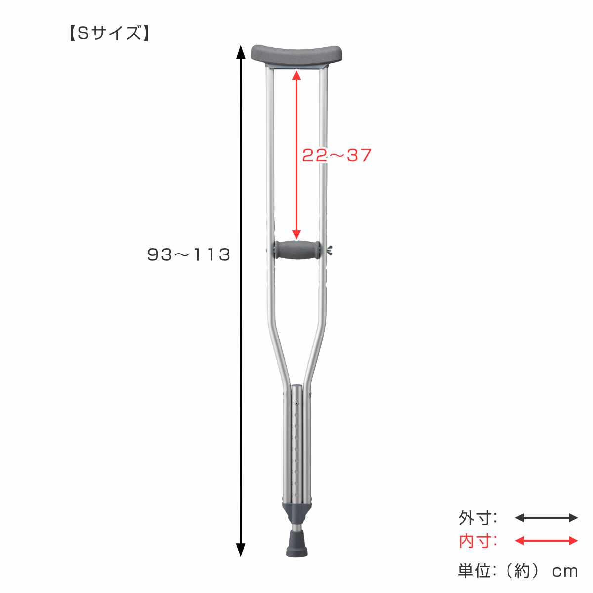 | サイズ | S 長さ:約 93~113(cm) 脇当てからグリップまでの長さ:約 22~37(cm) M 長さ:約 113~133(cm) 脇当てからグリップまでの長さ:約 36~51(cm) L 長さ:約 134~154(cm) 脇当てからグリップまでの長さ:約 41~56(cm) グリップ:約 長さ10(cm) |