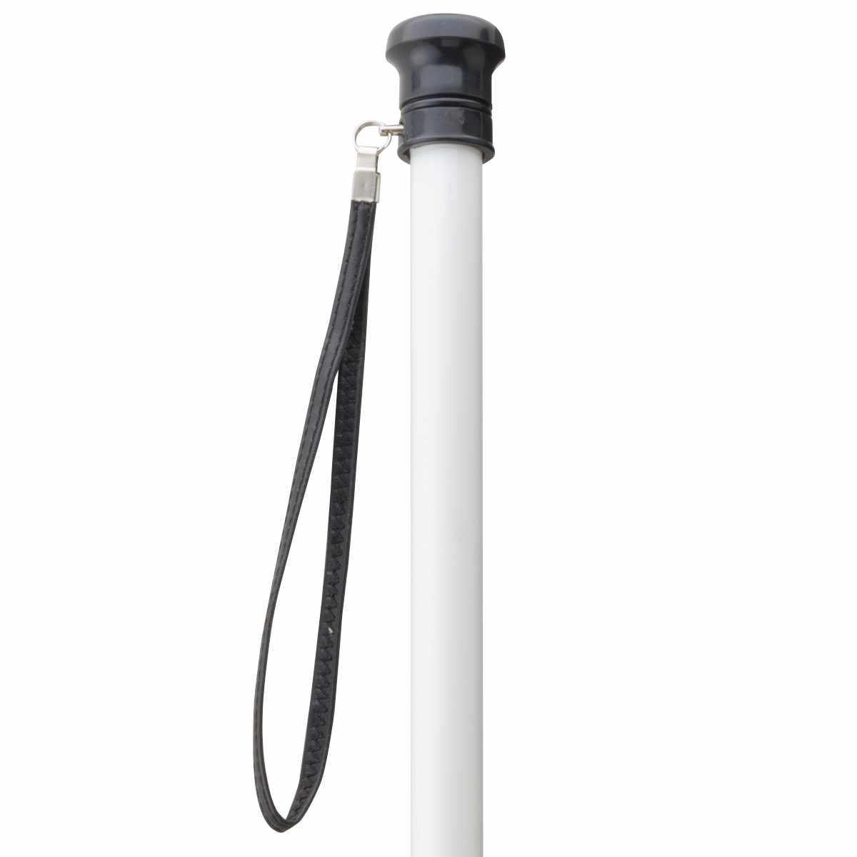 便利なストラップ付きです。手を離しても杖が倒れず、拾う必要がないので便利です。杖を置き忘れたり倒したりすることも少なくなります。