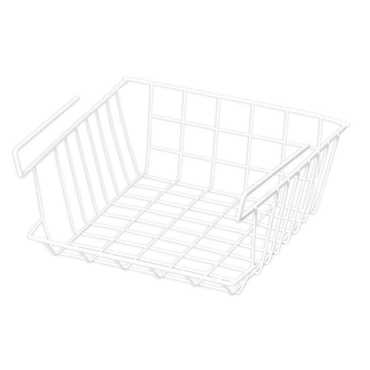 ハンガー部分を棚板に引っ掛けるだけで簡単に設置できます。本体は鉄の丈夫なワイヤー製なのでほこりがたまりにくく清潔にお使いいただけます。