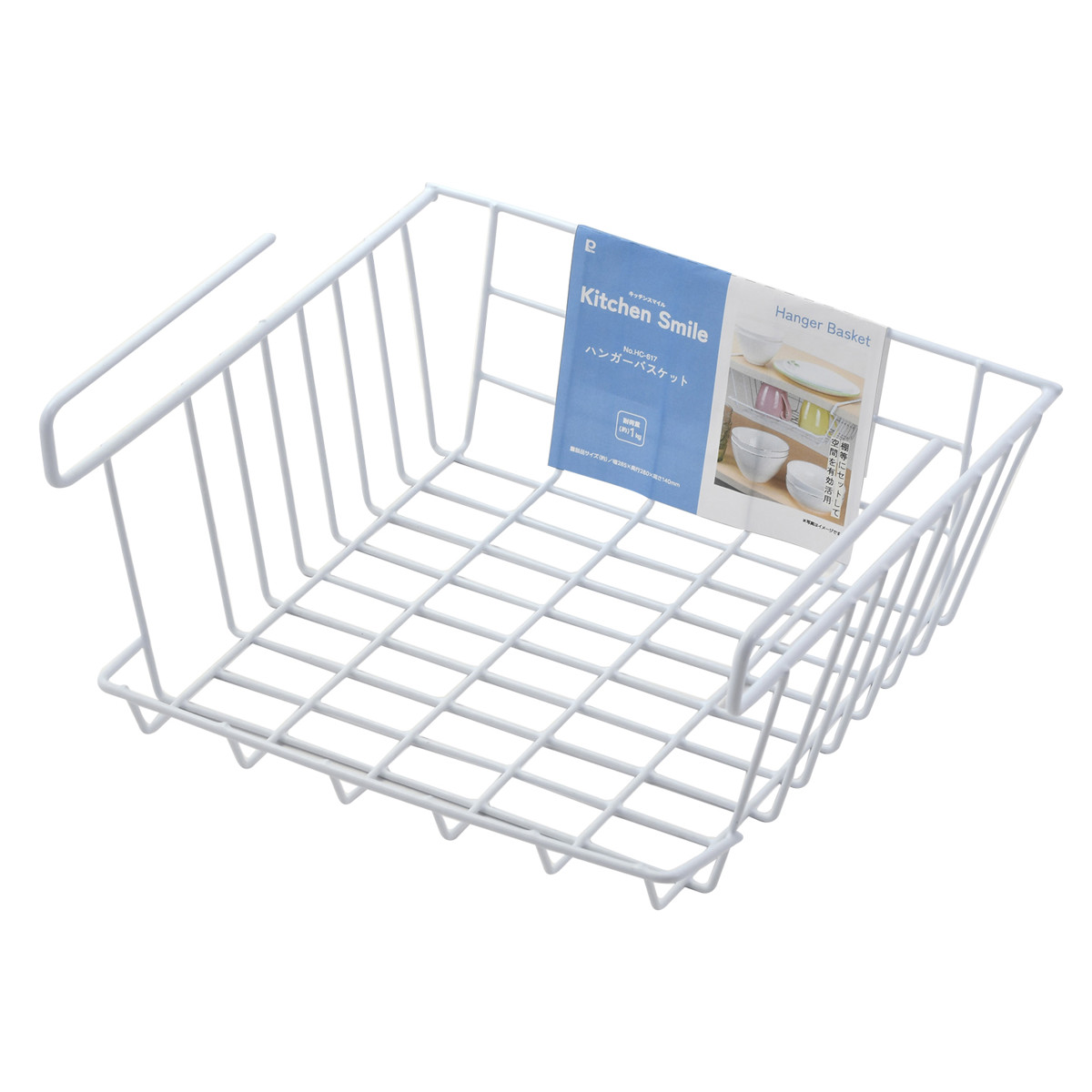 キッチンをすっきり収納して快適な空間にするハンガーバスケットです。棚板に引っ掛けるだけで棚上のデッドスペースを有効活用して収納を増やすことができます。