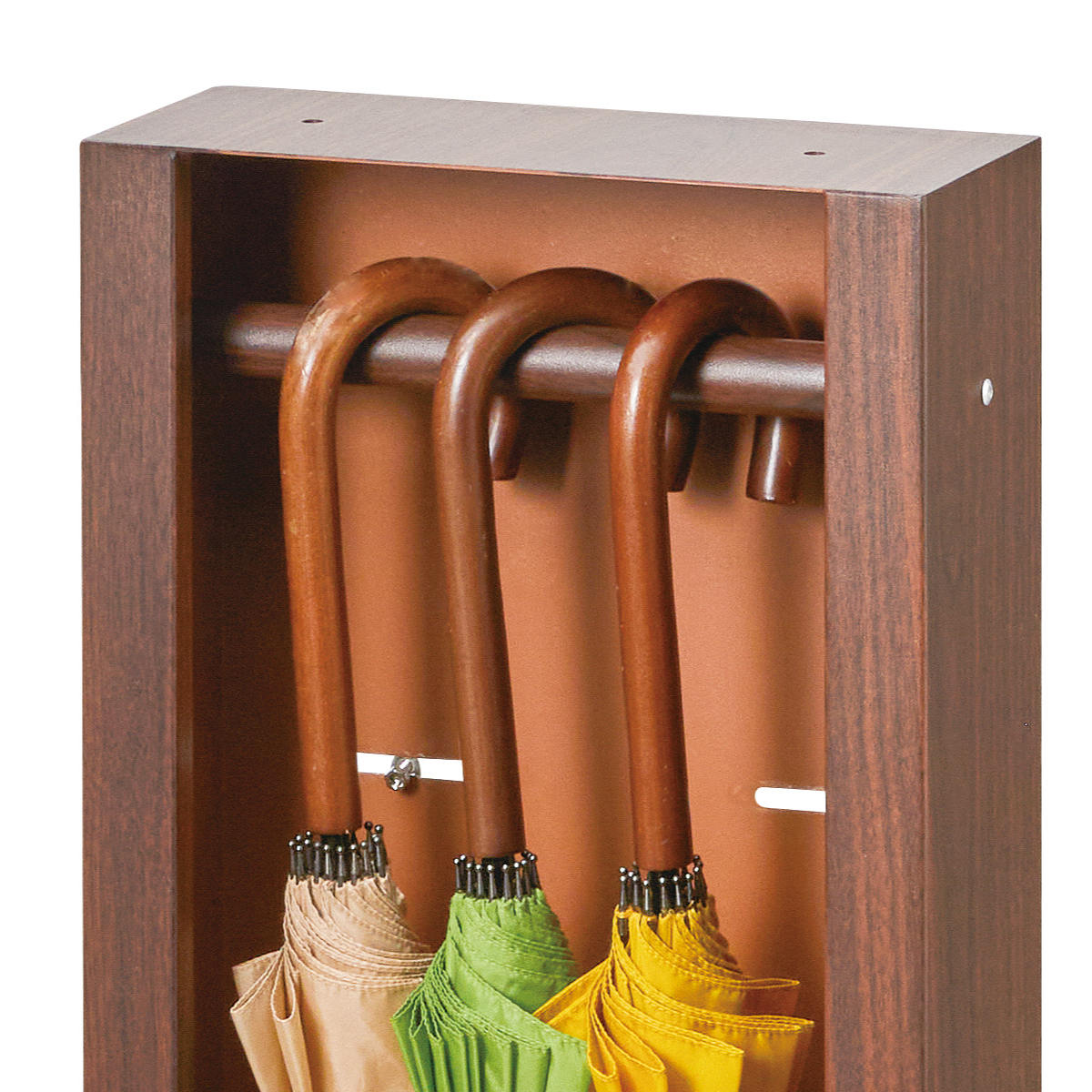 背面側は、上部にポールが付いているので傘などを収納することができます。