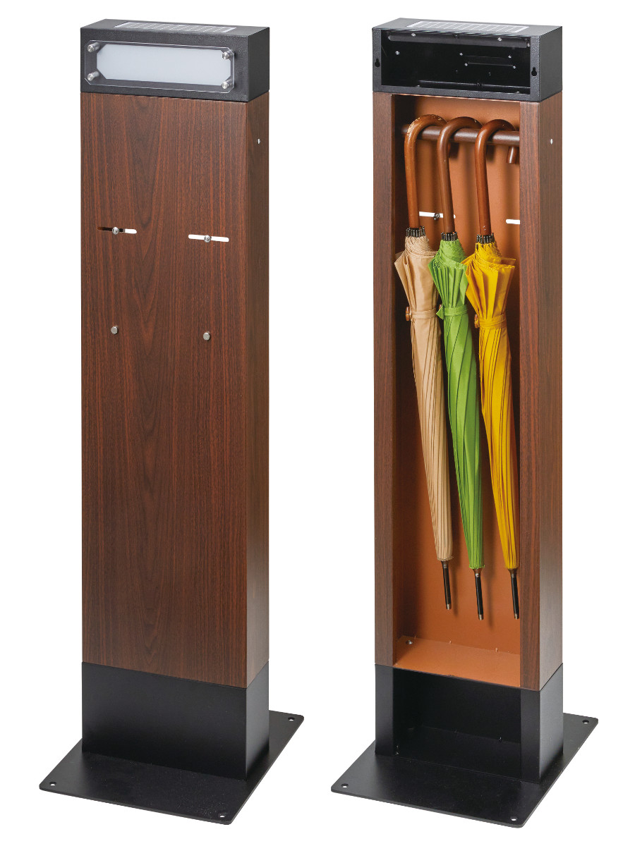 傘などを収納できるポール付き