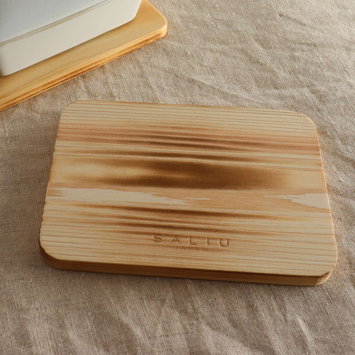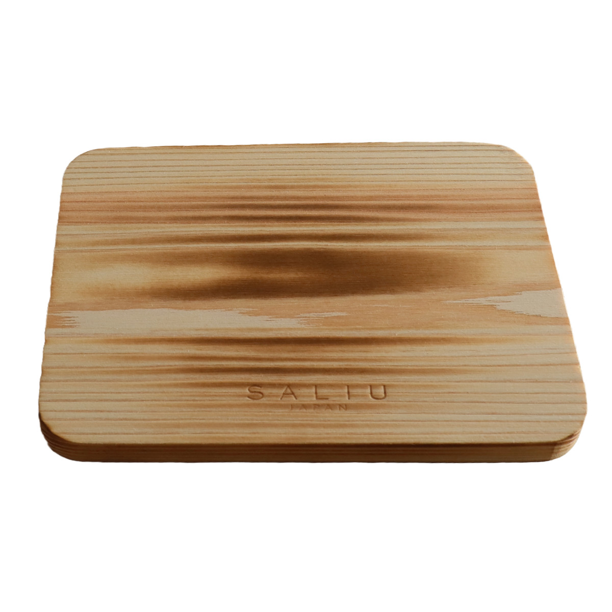 汚れや焦げを気にせず使える焼杉を使ったプレート型鍋敷き