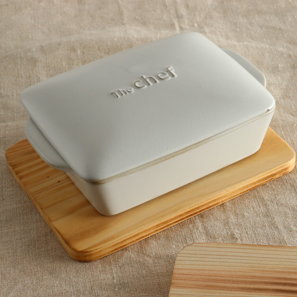 ザ・シェフシリーズのベイクパン、ベイクディッシュのミニがピッタリなサイズ。木の温もりを感じながら、お料理を目で楽しむための脇役としてテーブルを彩ってくれます。
