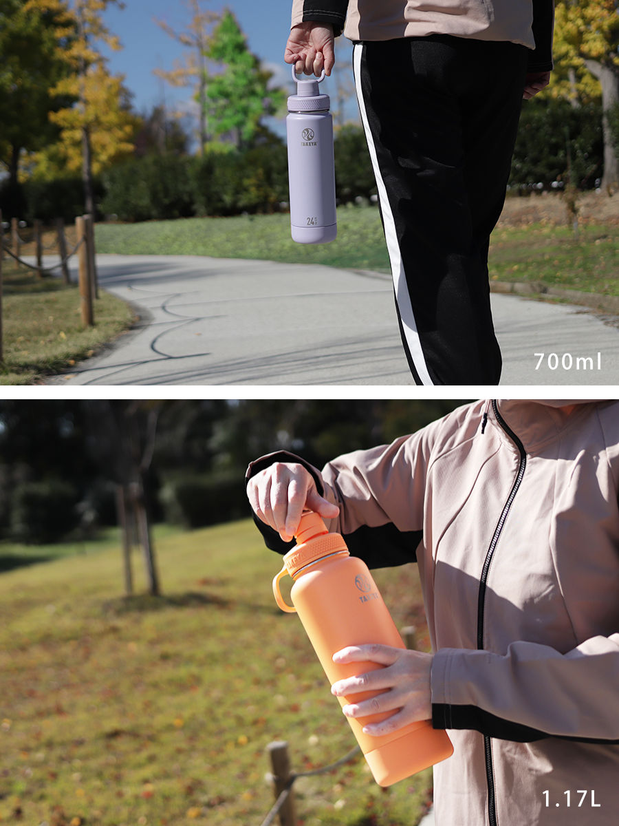 夏場やデイリーユースに使いやすい700ml、アウトドアやスポーツ時におすすめの1.17Lの2サイズ展開です。ご家族で揃えたり、シーンや季節に合わせてお選びいただけます。