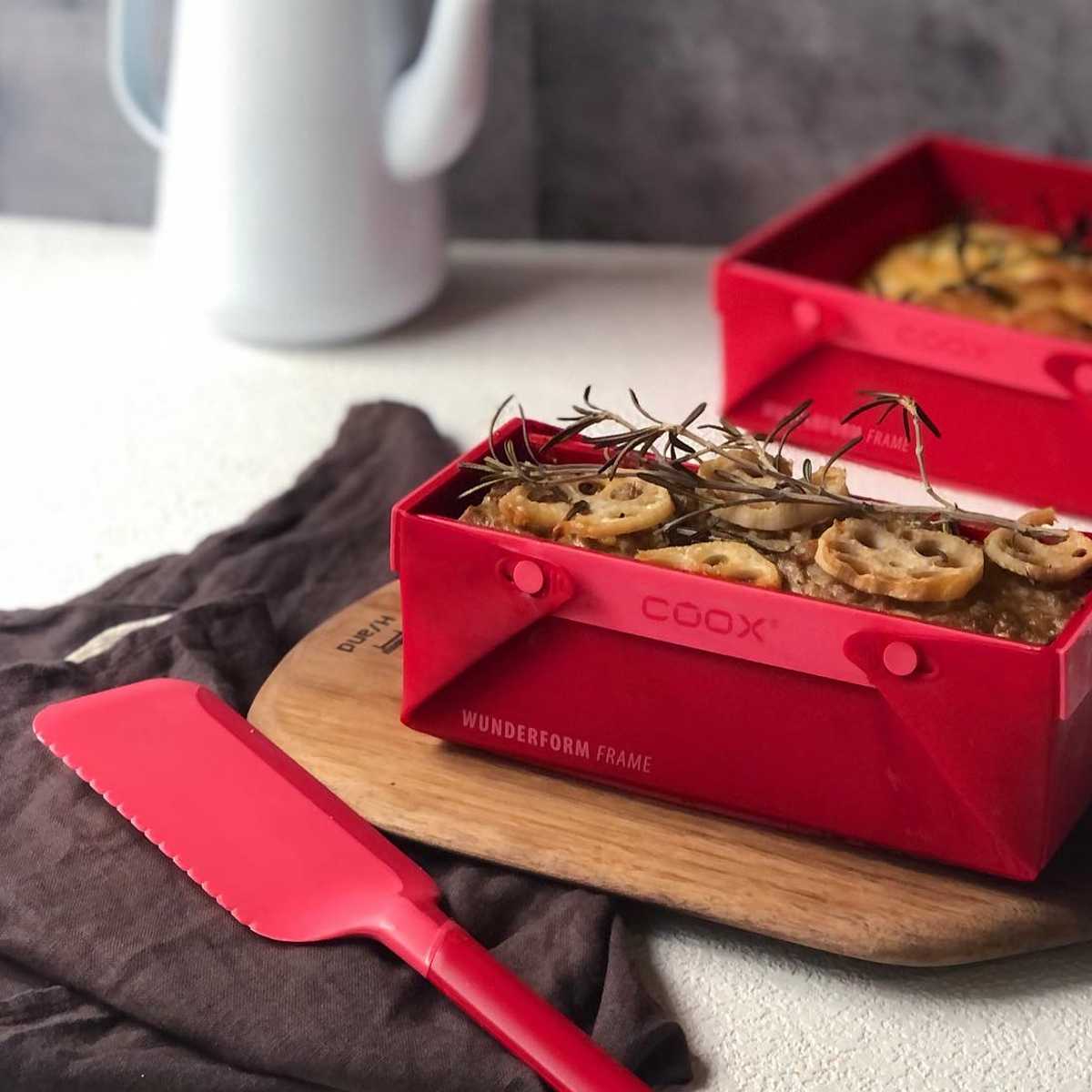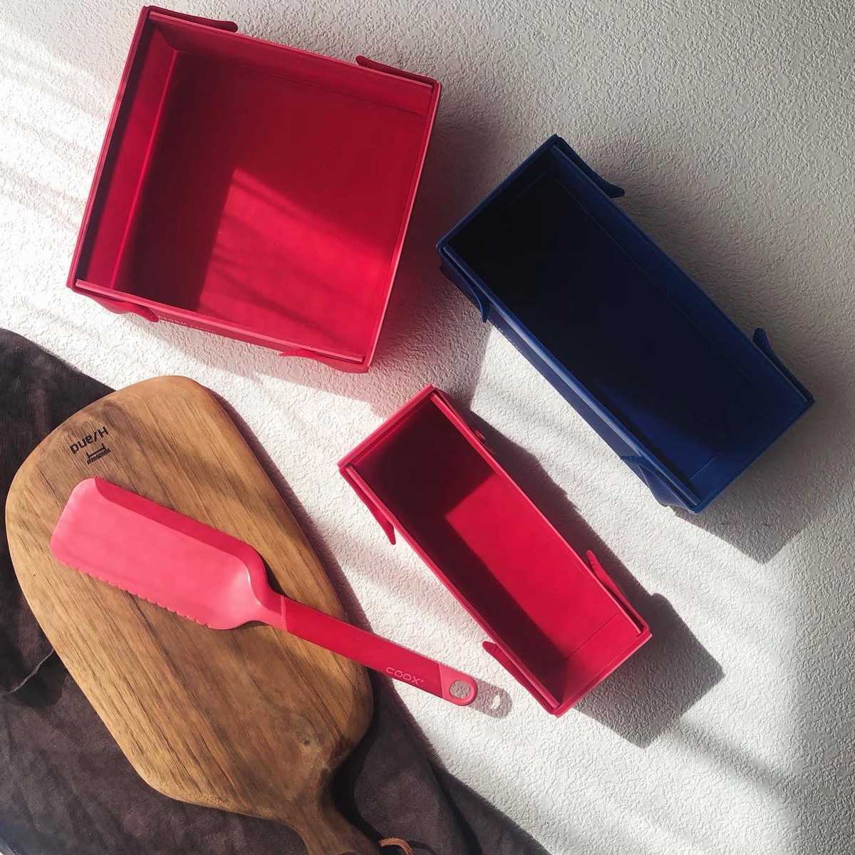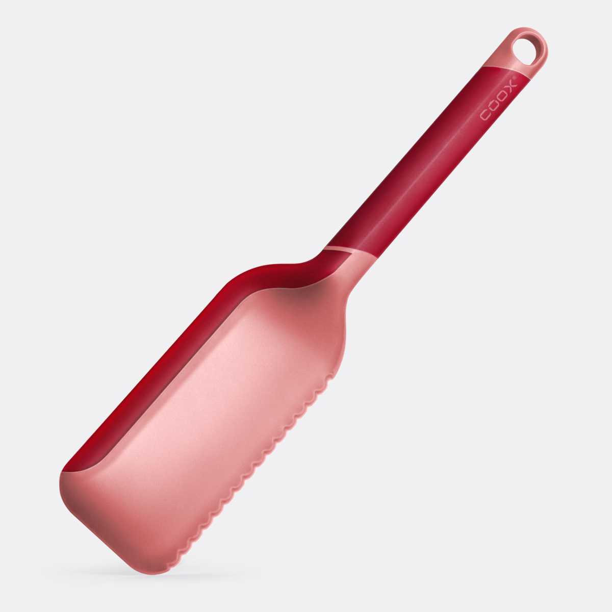 洗いやすいたためる焼き型「COOX」専用のカッティングサーバーです。シリコーン製の焼き型の上でケーキを切り分けたり、お皿への取り分けにお使いいただけます。