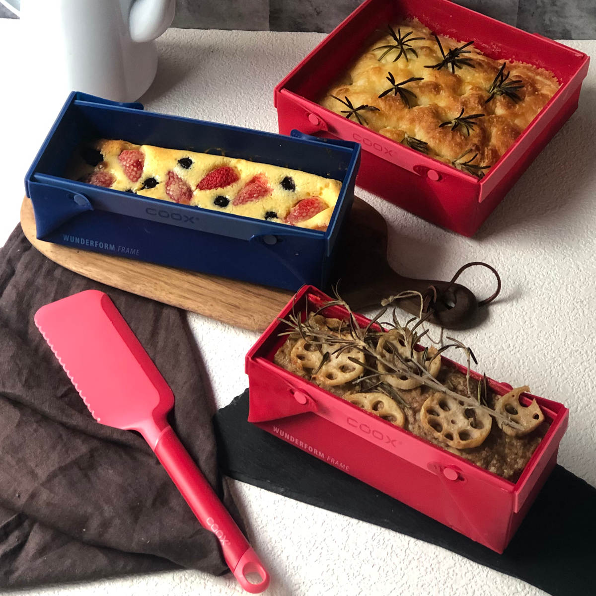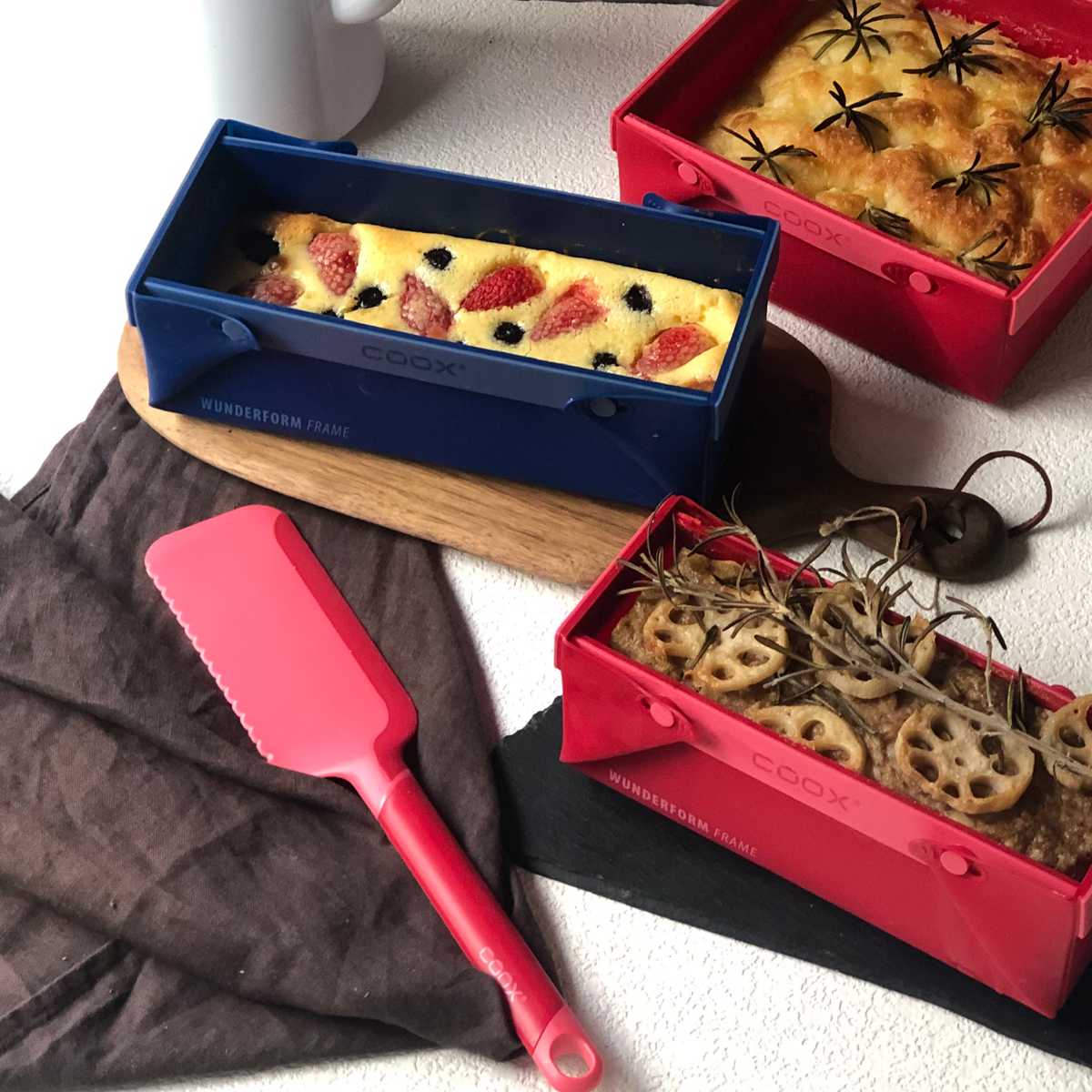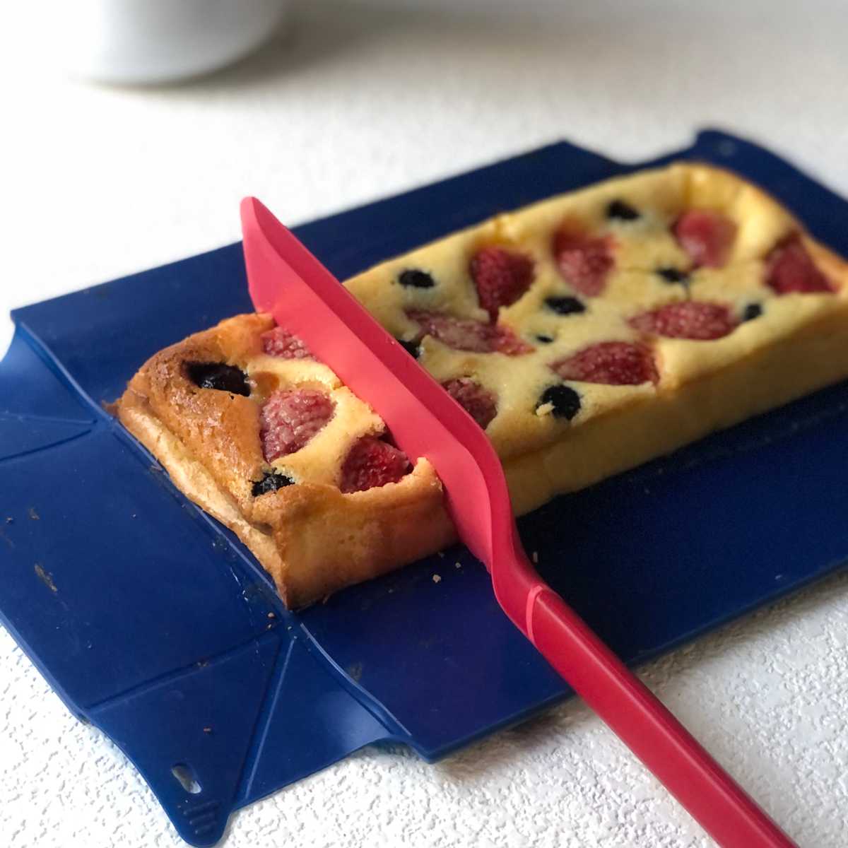 洗いやすいたためる焼き型「COOX」専用のカッティングサーバーです。シリコーン製の焼き型の上でケーキを切り分けたり、お皿への取り分けにお使いいただけます。