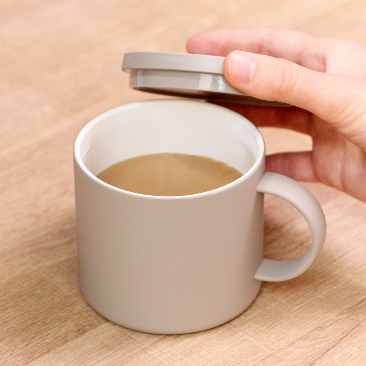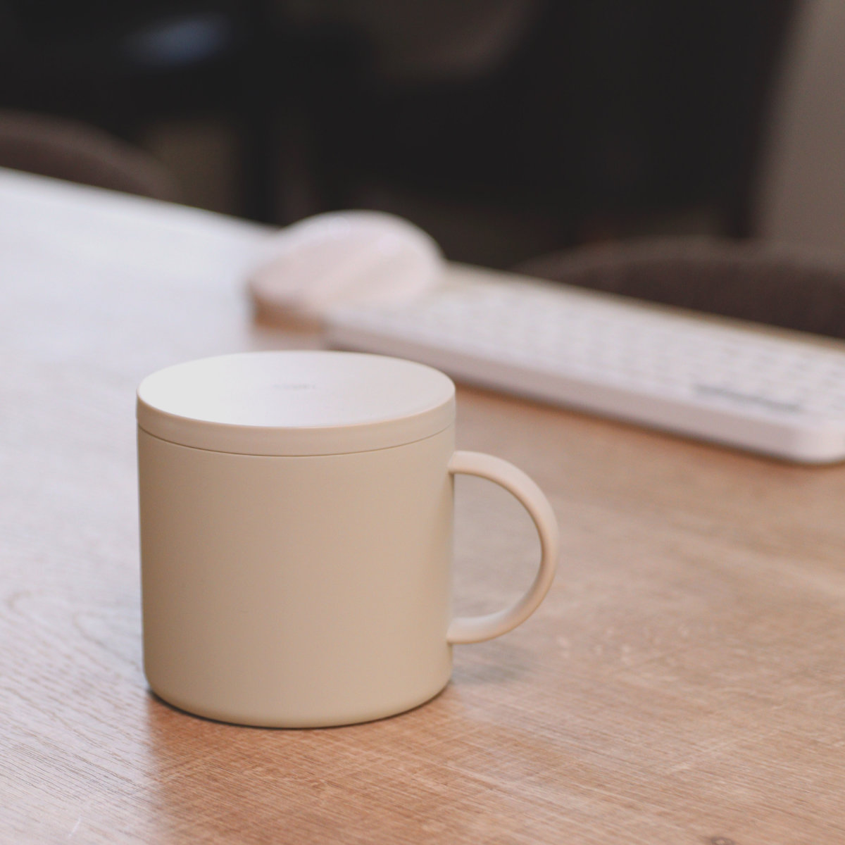 蓋付きで保温効果が上がるだけでなく、こぼれにくくなり、ホコリも防いでくれます。また、本体は真空二重構造で結露もしないので、機材や書類などがあるデスクワークシーンにもおすすめです。
