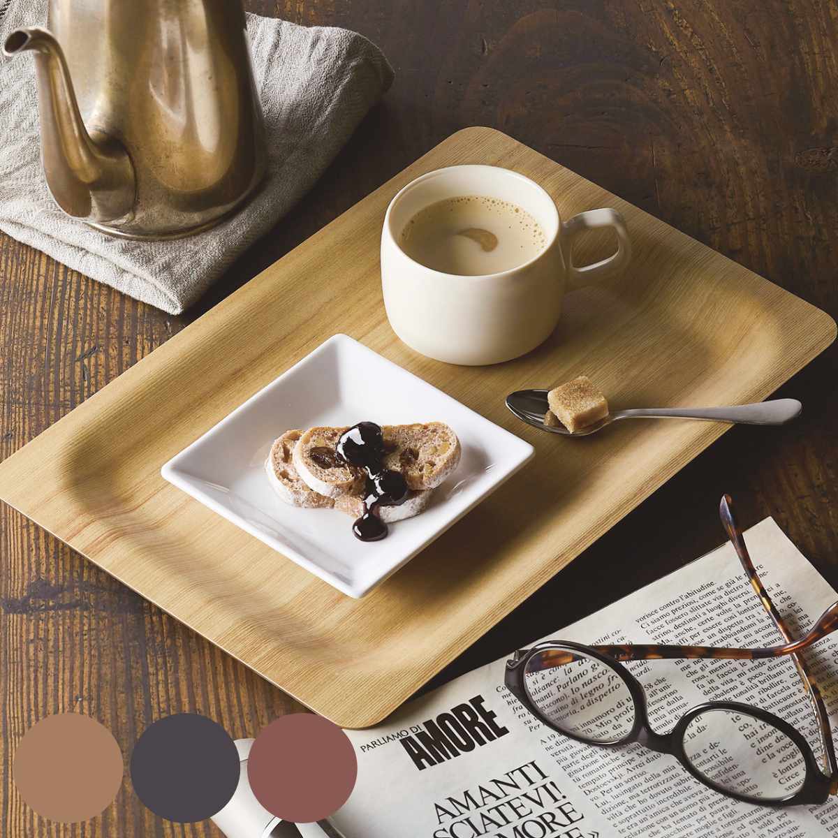 紙を樹脂で補強した、軽くて丈夫な洗えるテーブルウェアです。ナチュラルな木目の風合いとやさしいフォルムは、飽きが来ず、様々なシーン、インテリアにマッチします。
