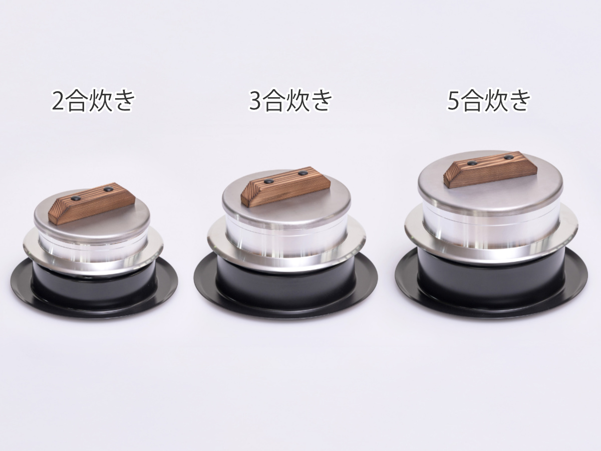 「釜炊き三昧」は2合炊き・3合炊き・5合炊きの3サイズからお選びいただけます。お好みのサイズで炊きたての美味しいご飯をお楽しみ下さい。