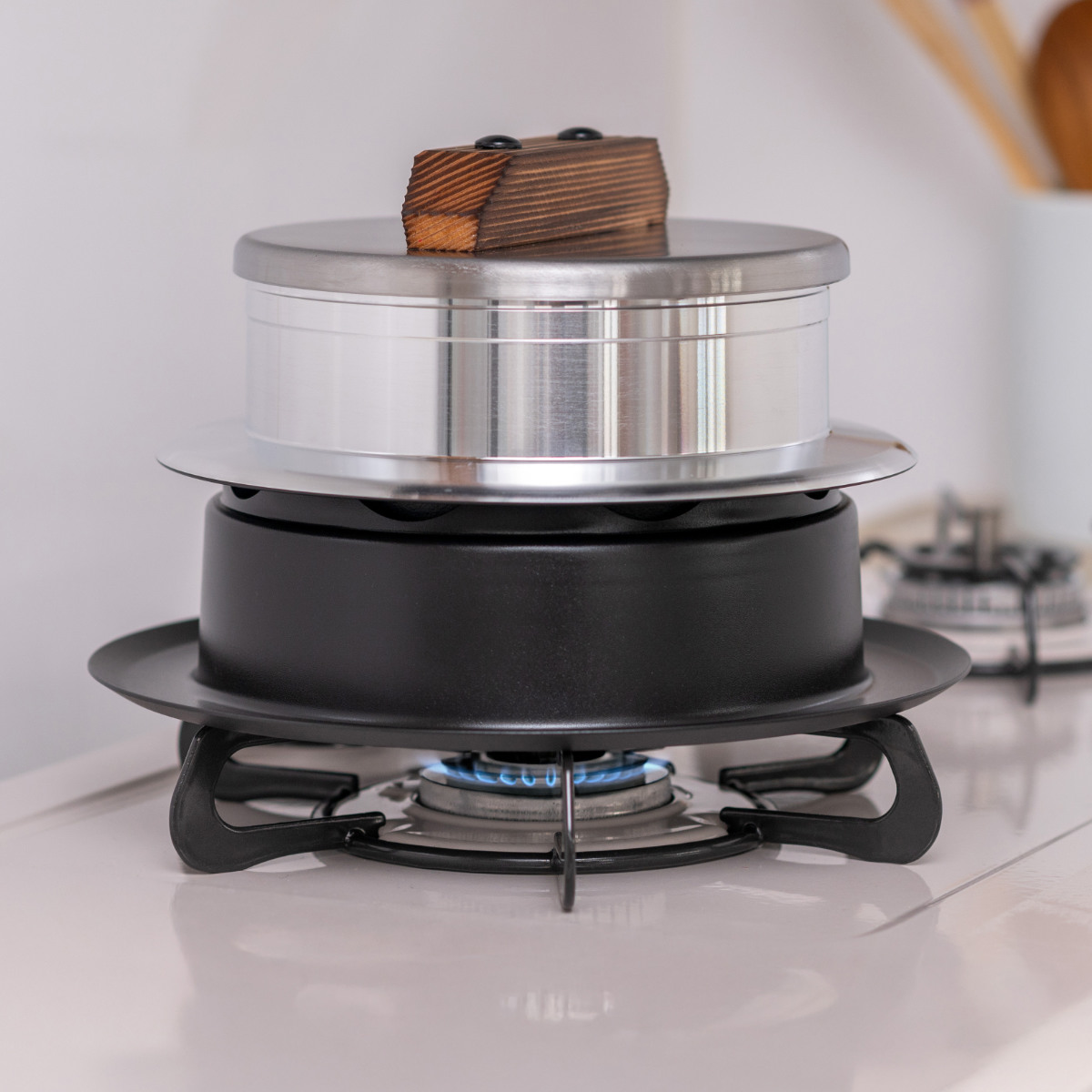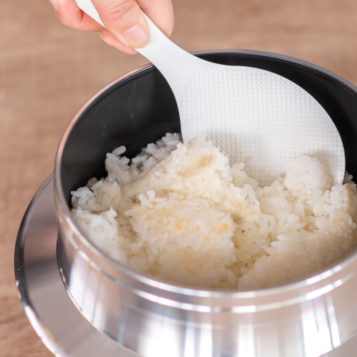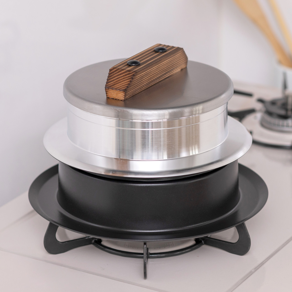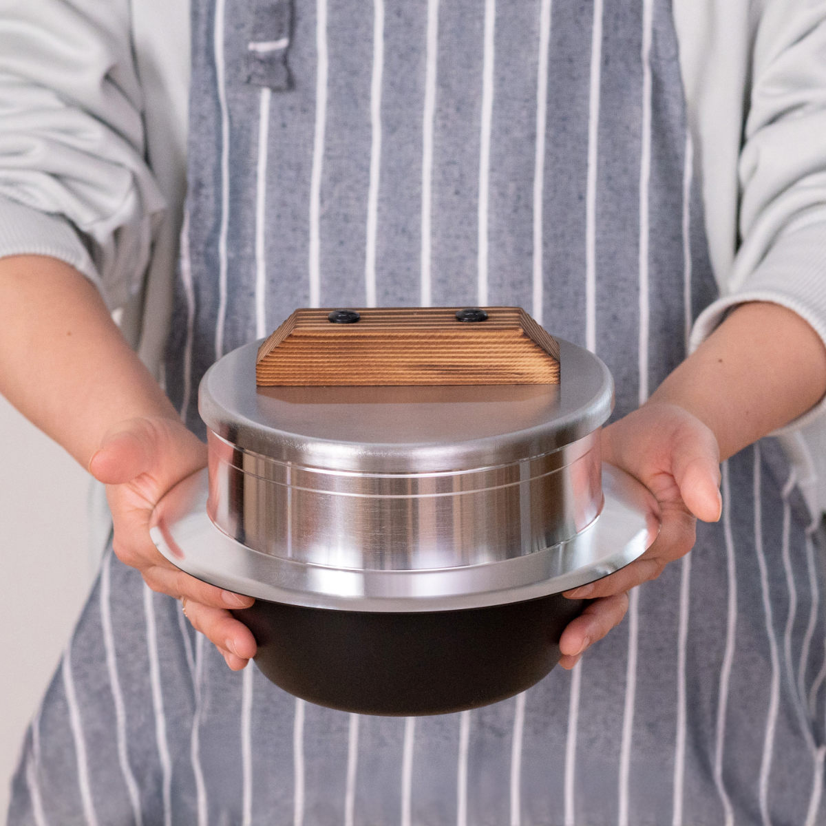 | 材質 | 【蓋】本体:ステンレス鋼、ツマミ:天然木 【釜】本体:アルミニウム合金、内面:セラミック塗膜加工、外面:施盤加工、つば下:耐熱焼付け塗装(セラミック塗装) 【かまど】本体:アルミニウム合金、内面:焼付け塗装(セラミック塗装)、外面:セラミック塗膜加工 |