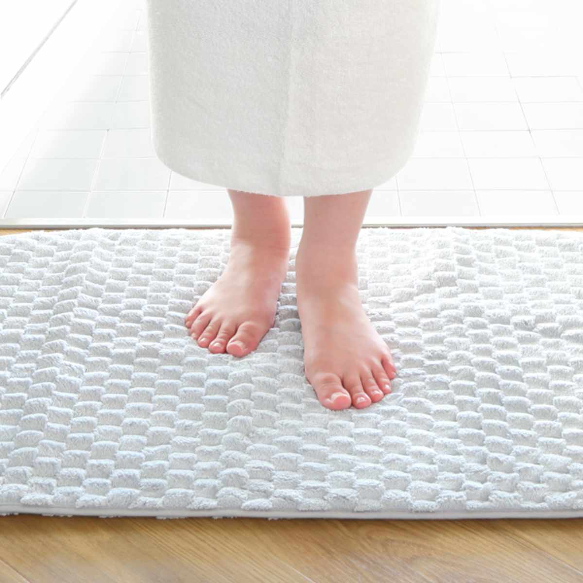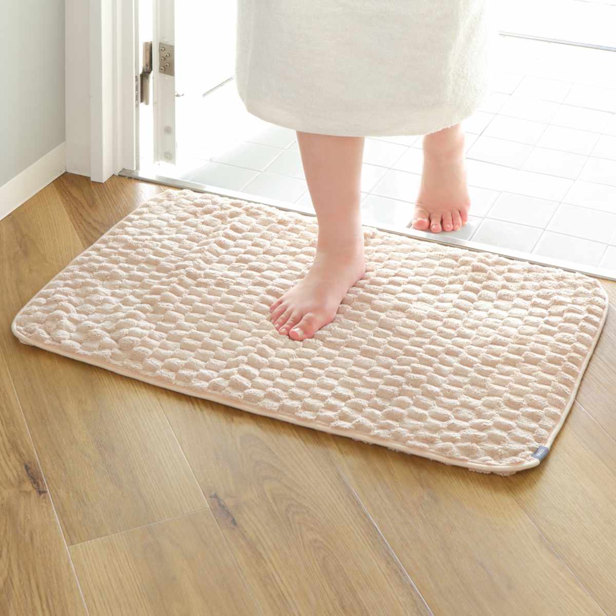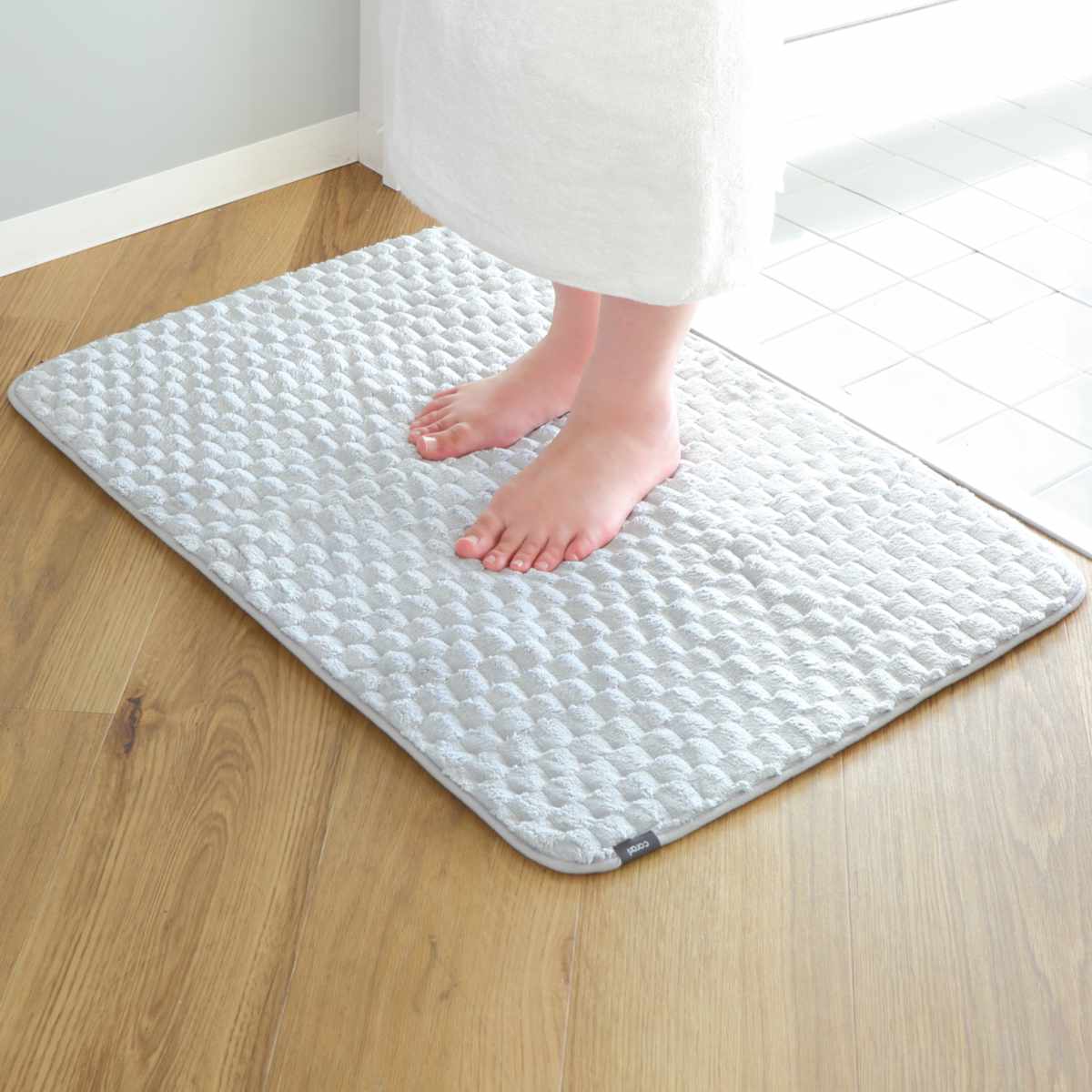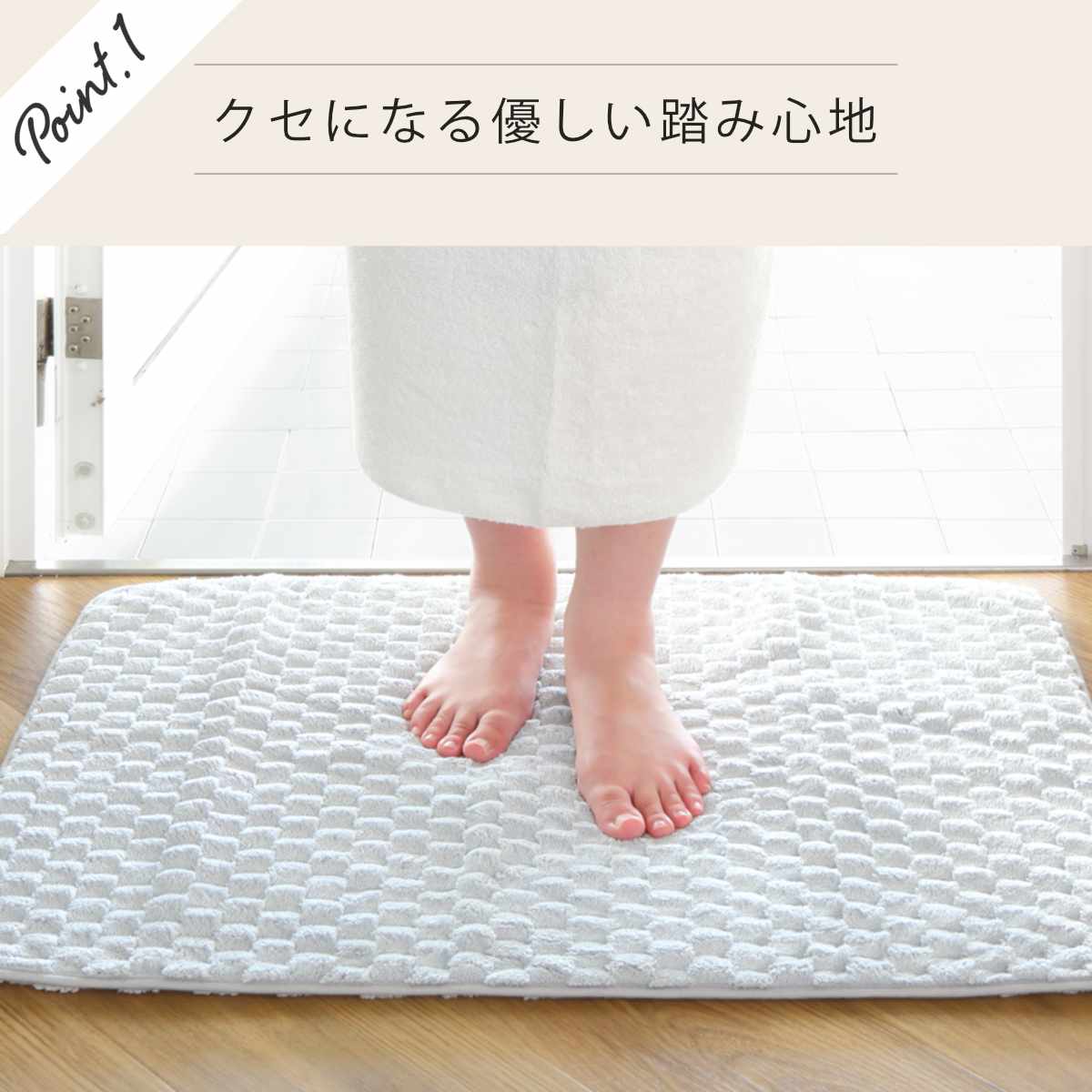 ぽこぽこした感触が足の裏にフィットし、クセになるマイクロファイバータオル素材のバスマットです。ぎっしりと詰まった繊維の表面をカットパイルでやわらかな肌触りに仕上げることにより、優しい踏み心地を実現。お風呂上がりが楽しみになる1枚です。