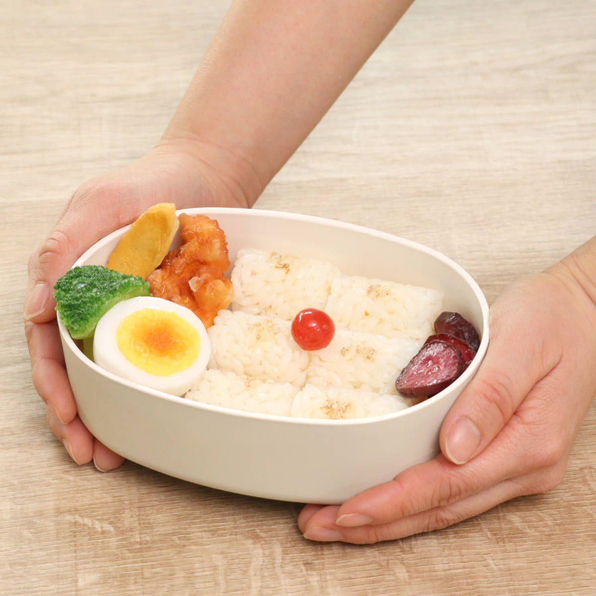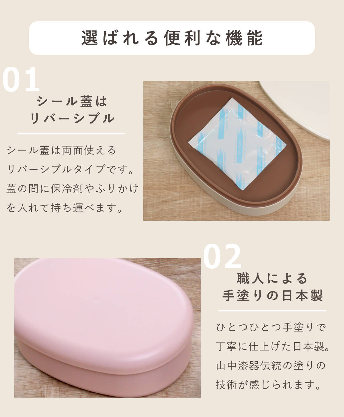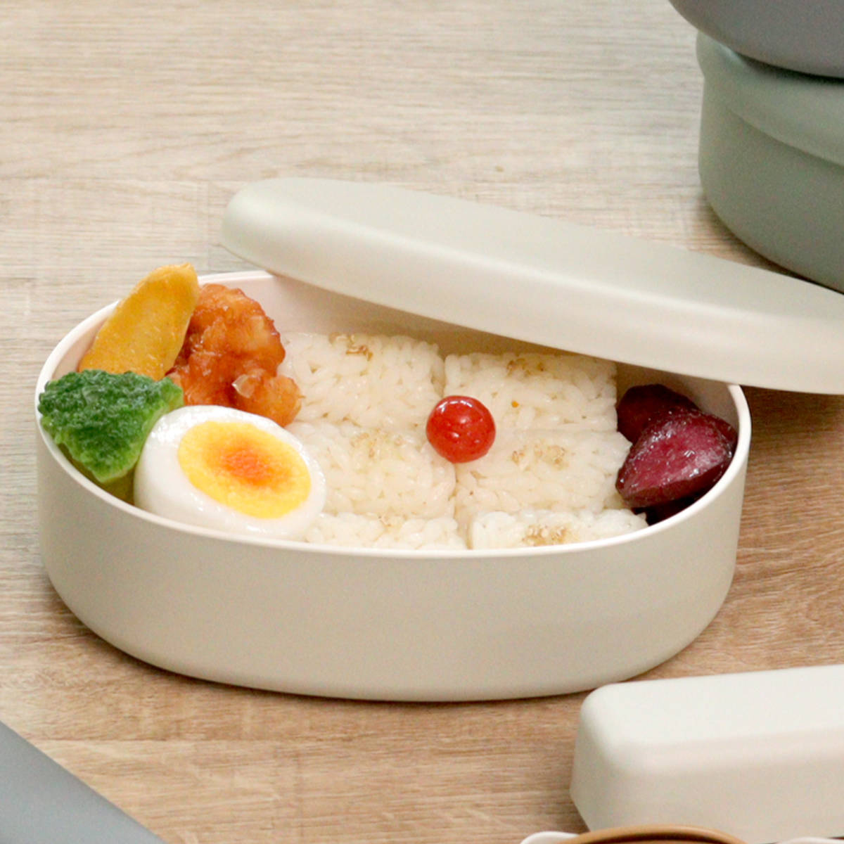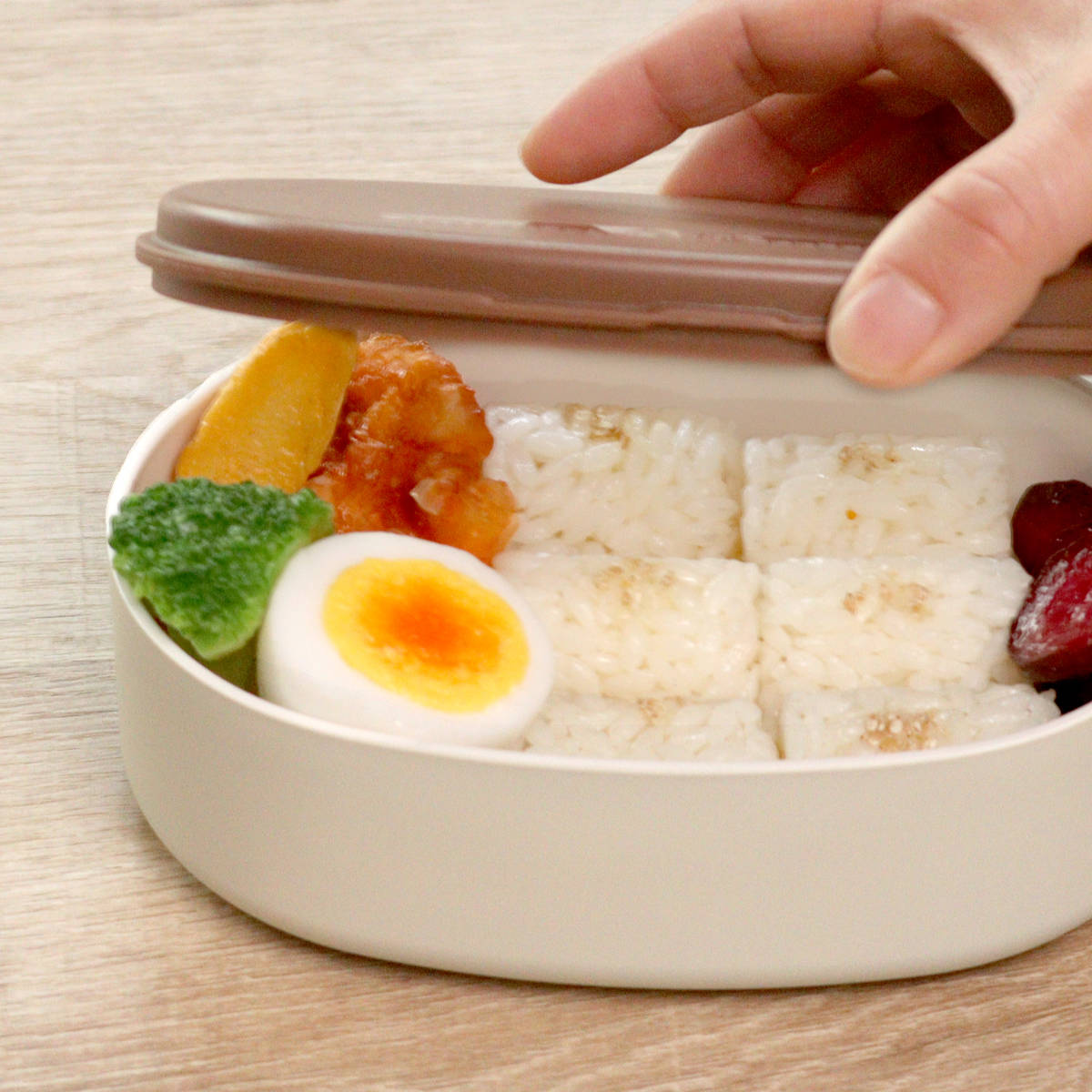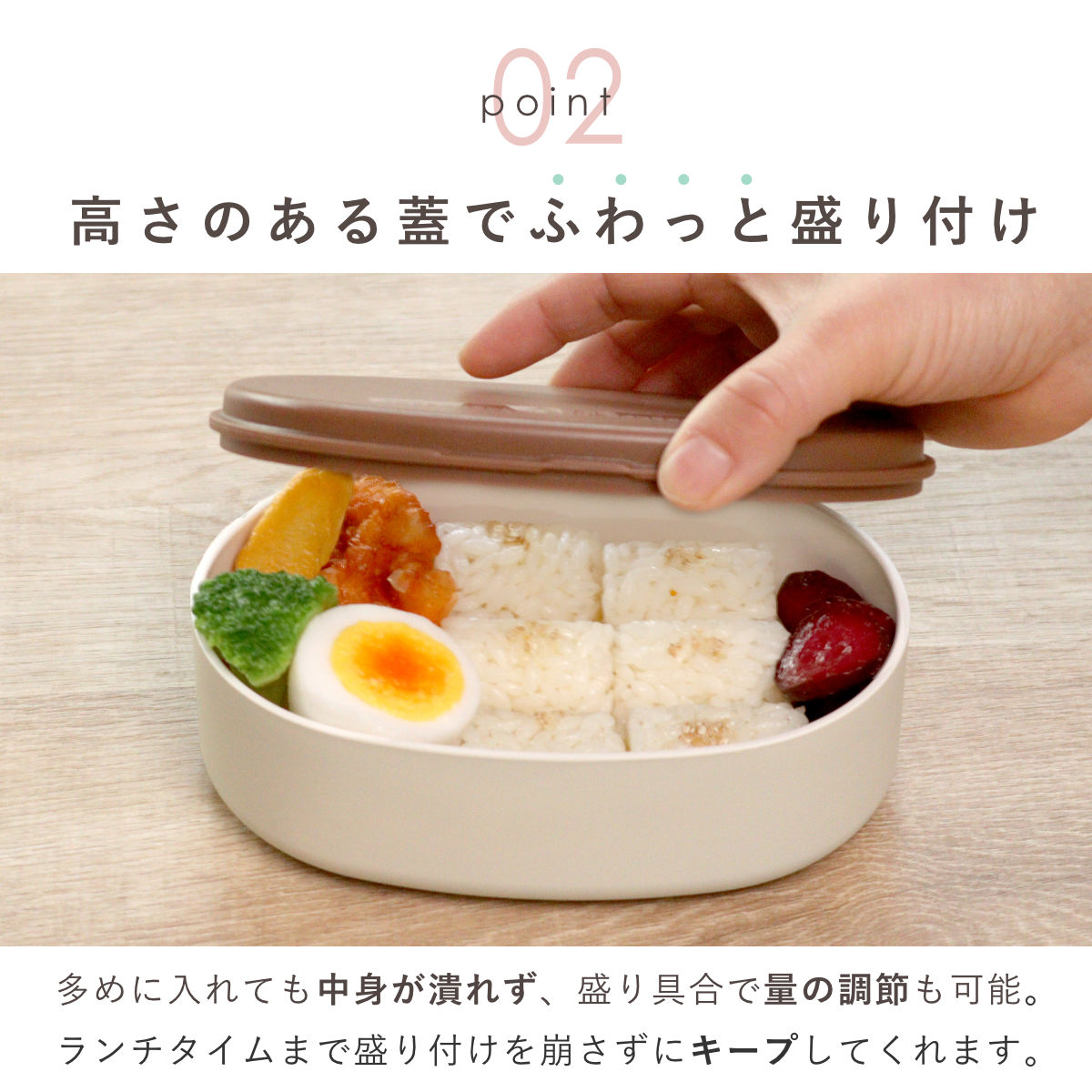 高さのあるシール蓋でふわっと盛り付けできます。多めに入れても中身が潰れず、盛り具合で量の調節も可能。簡単にきれいにお弁当を詰めることができ、ランチタイムまで盛り付けを崩さずにキープしてくれます。
