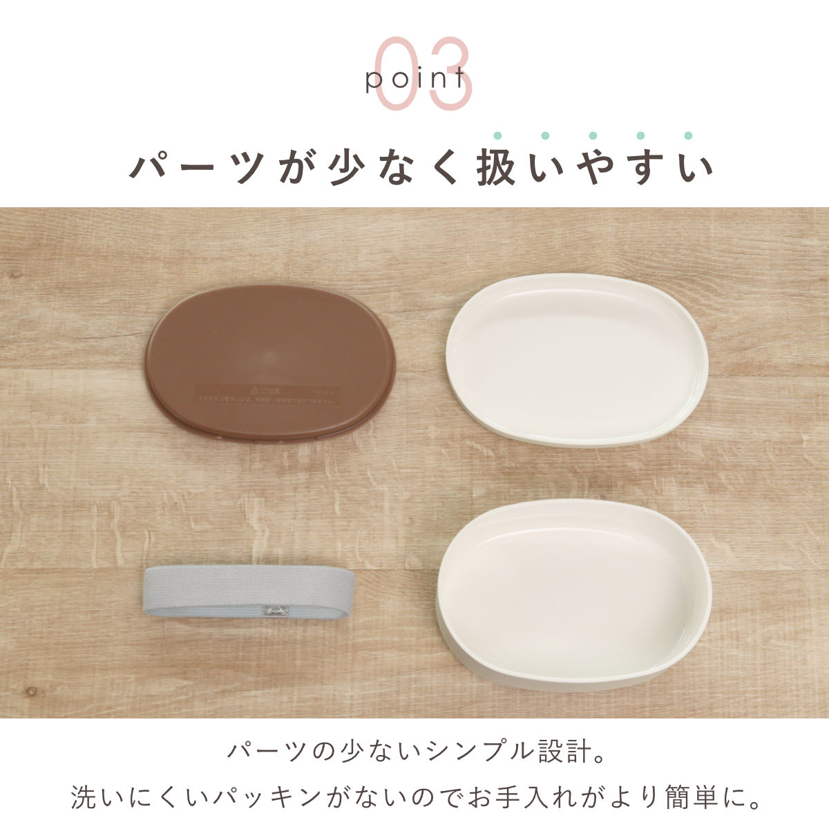 パーツの少ないシンプル設計。洗いにくいパッキンがないのでお手入れがより簡単に。