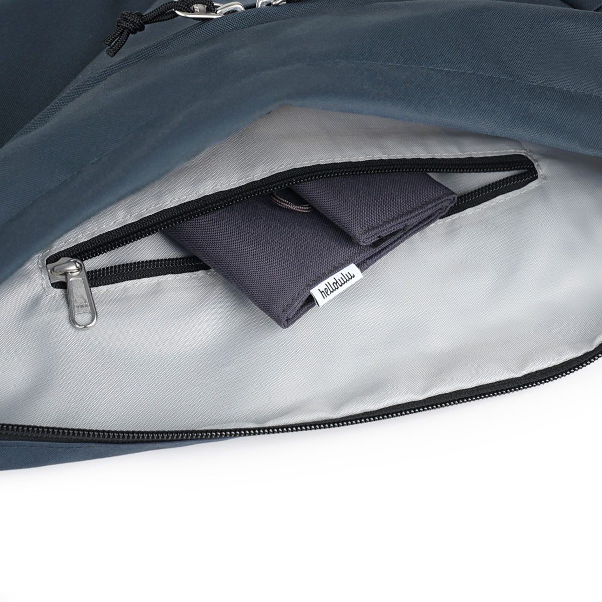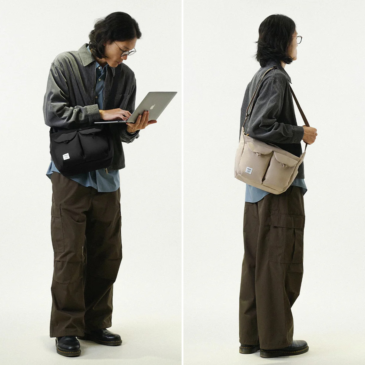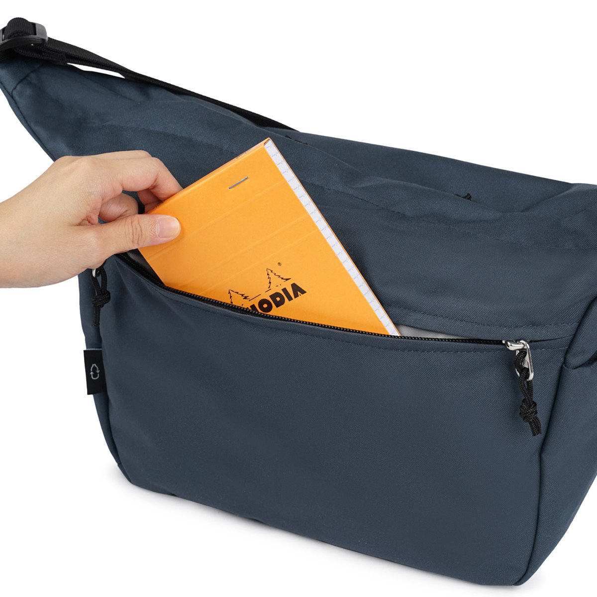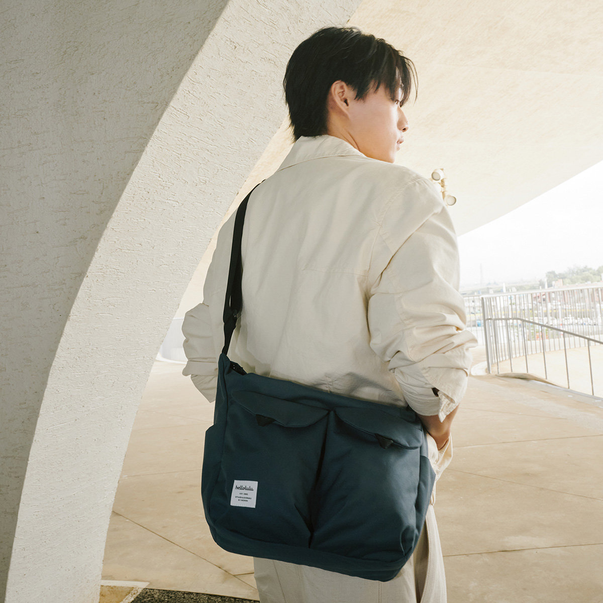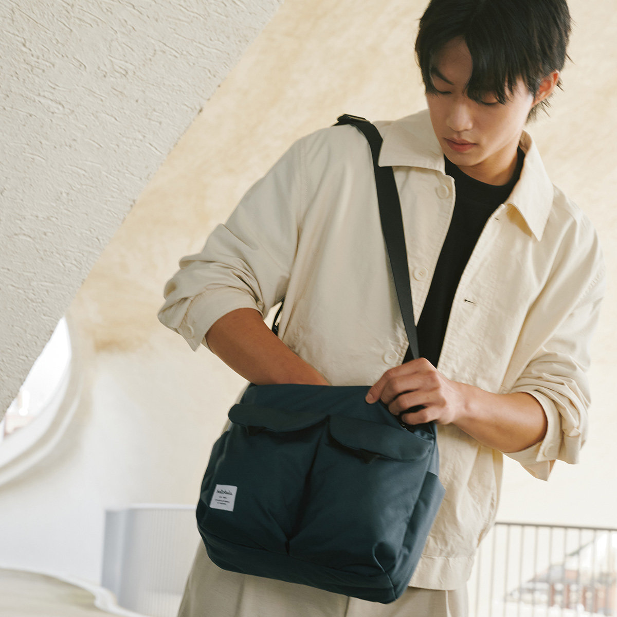 プラスチック廃棄物をリサイクルしたポリエステル素材を使用しています。軽量で使いやすいだけでなく環境にもやさしいアイテムです。撥水加工が施されているので、雨の日やアウトドアシーンでも安心です。