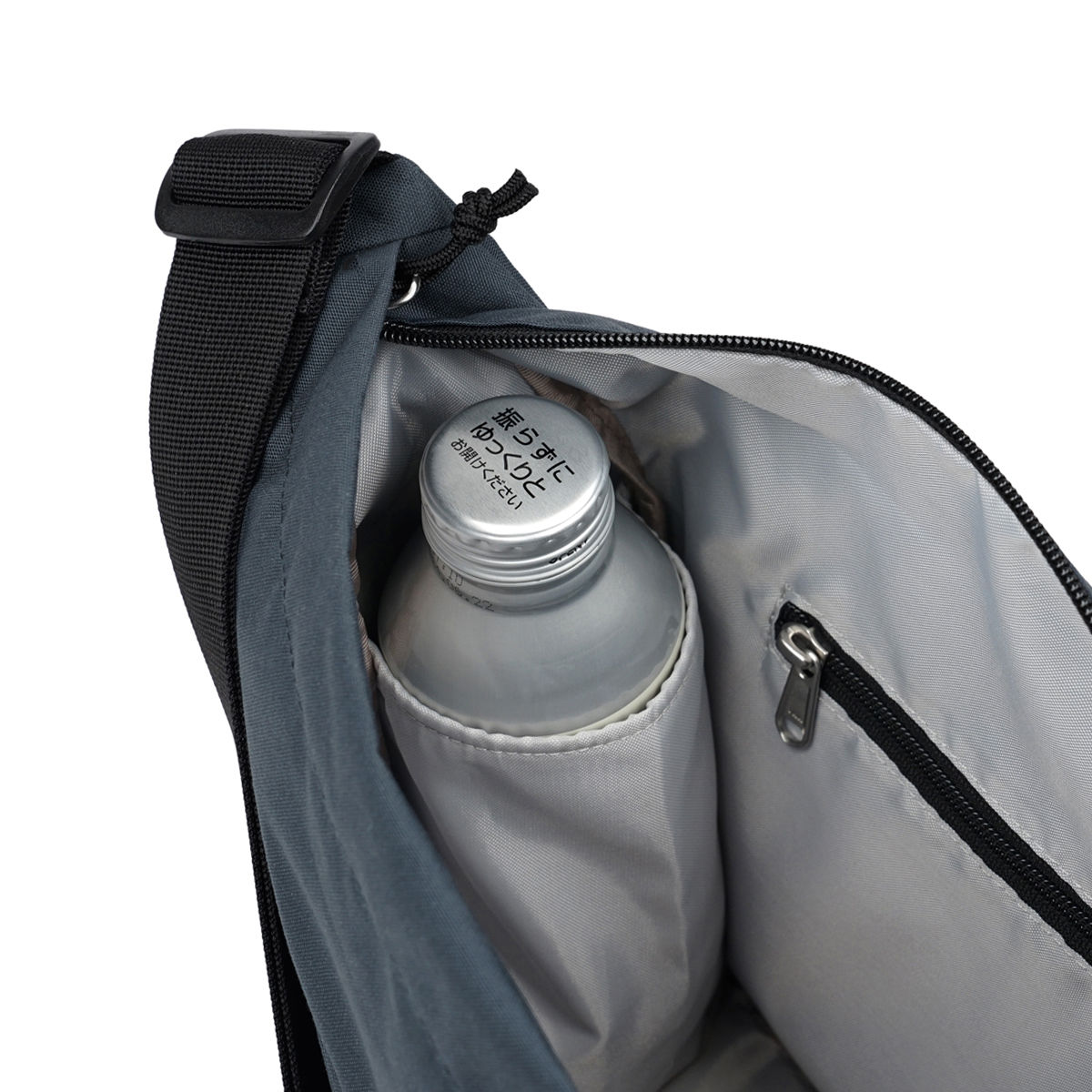 メイン収納にはボトルホルダー付きで、水筒や500mlペットボトルなどを倒すことなく持ち運べます。